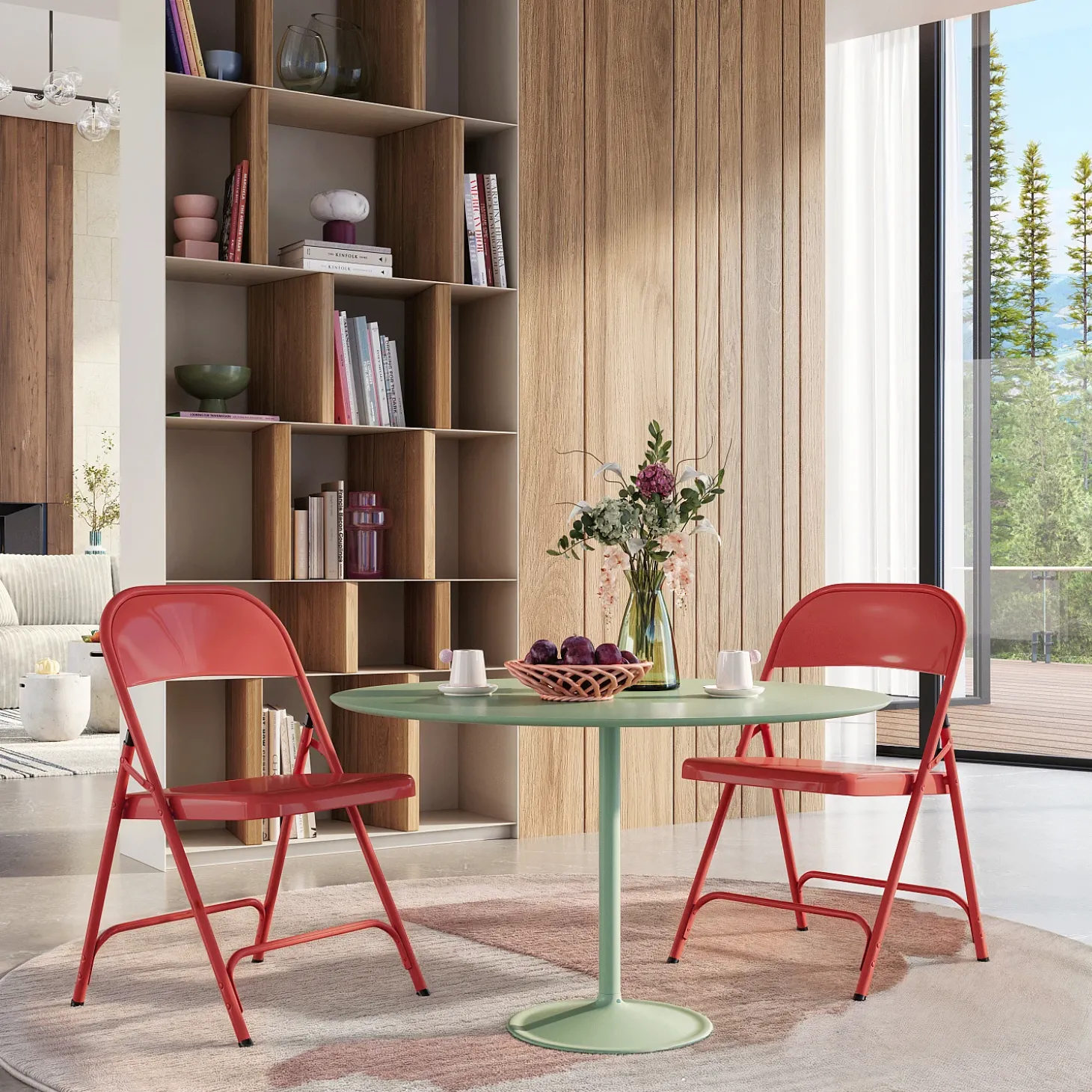 Dans le bureau, la chambre ou la salle à manger, elle se déplace aisément et son coloris rouge coquelicot apporte une touche de couleur pop dans un intérieur. Une fois repliée, elle se range discrètement.