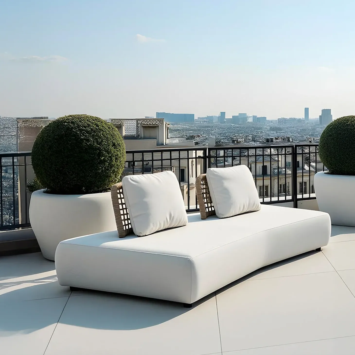 Le canapé d’extérieur 2 places Maraba propose une forme légèrement courbée pour une touche de design supplémentaire. Réhaussé d’une teinte beige muscade, il instaure une atmosphère à la fois chaleureuse et lumineuse.