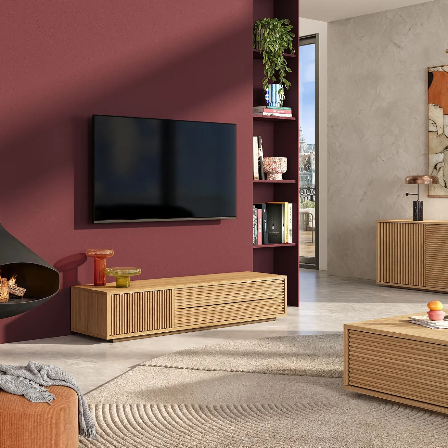 Le meuble TV en chêne Max insuffle une atmosphère authentique dans le salon.