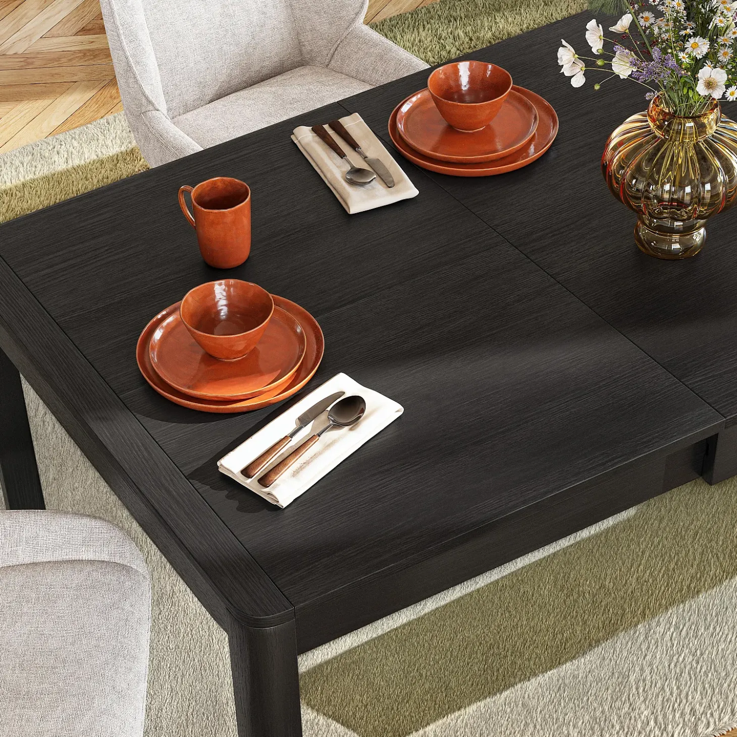 La table extensible Milord en frêne noir incarne l’élégance du bois dans une interprétation contemporaine. Son design sobre aux angles adoucis s’inscrit dans la continuité des lignes sculptées qui signent la collection. Grâce à son système de rallonge, elle s’étend facilement pour accueillir jusqu’à 8 convives.