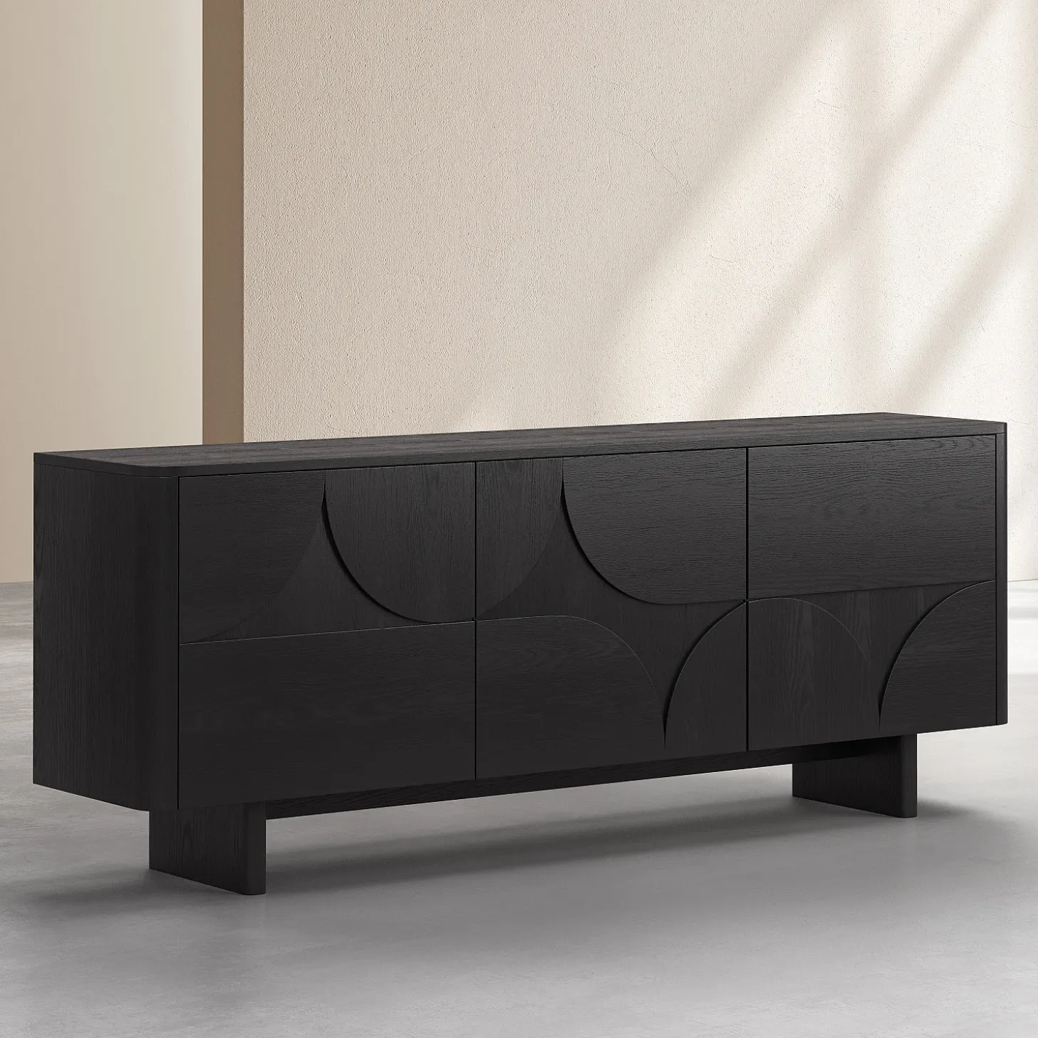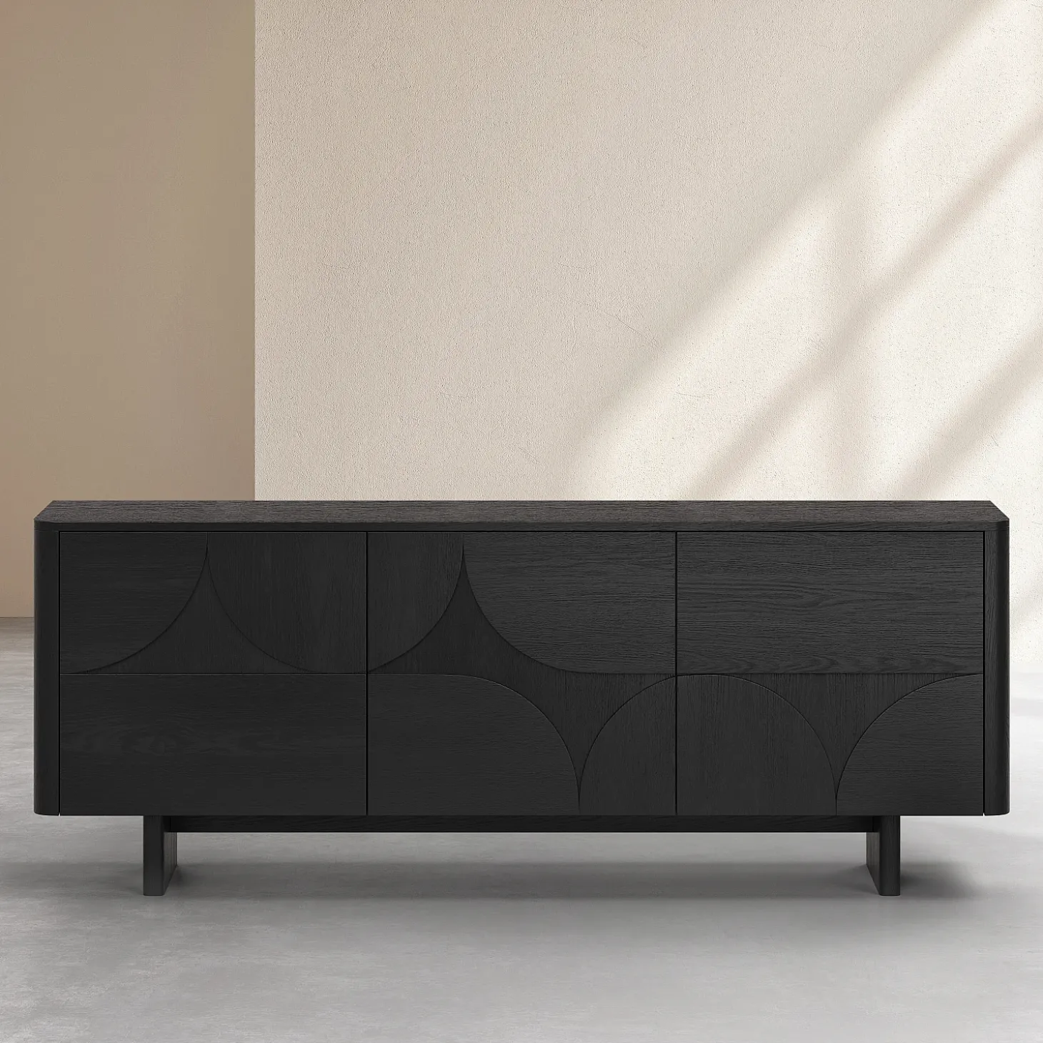 Avec ses trois portes sculptées, le buffet bas Milord en frêne noir offre une capacité de rangement généreuse tout en structurant l’espace avec légèreté grâce à sa silhouette allongée. Ses portes au système push to open assurent une façade continue, sans poignée visible.