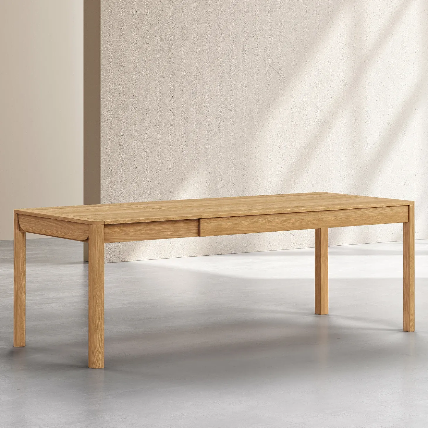 La table extensible Milord en chêne clair incarne l’élégance du bois dans une interprétation contemporaine. Son design sobre aux angles adoucis s’inscrit dans la continuité des lignes sculptées qui signent la collection. Grâce à son système de rallonge, elle s’étend facilement pour accueillir jusqu’à 8 convives.