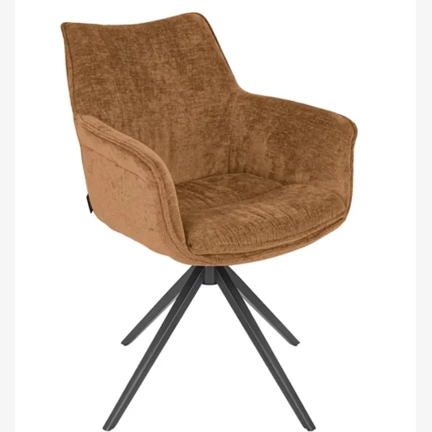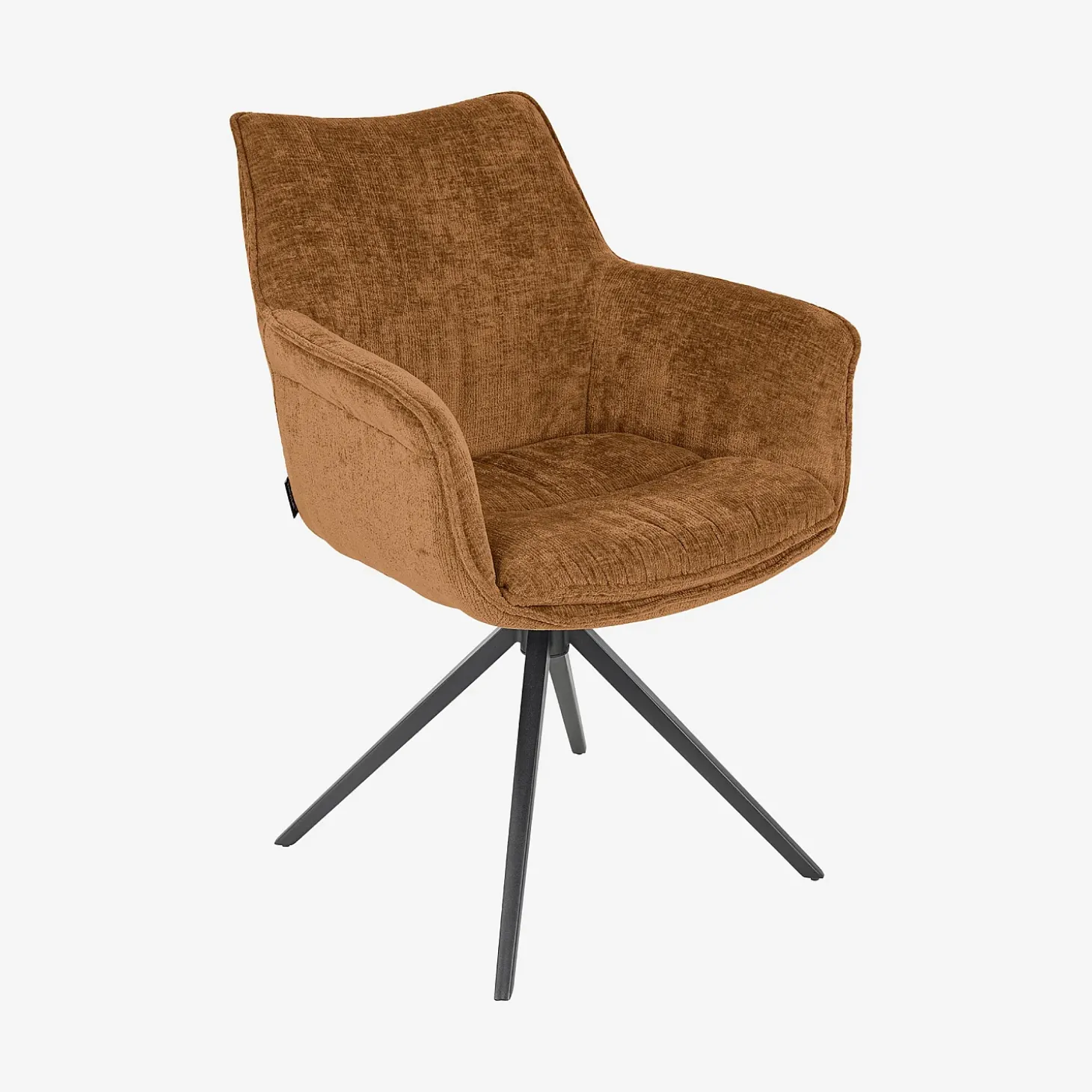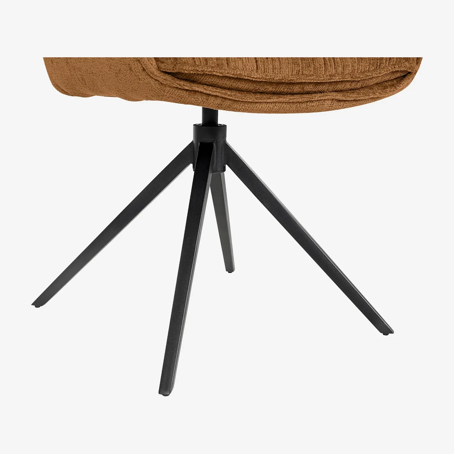 Son revêtement en tissu chenille, au toucher doux et aux reflets discrets, capte délicatement la lumière et apporte de la nuance à son coloris ocre foncé chaleureux.