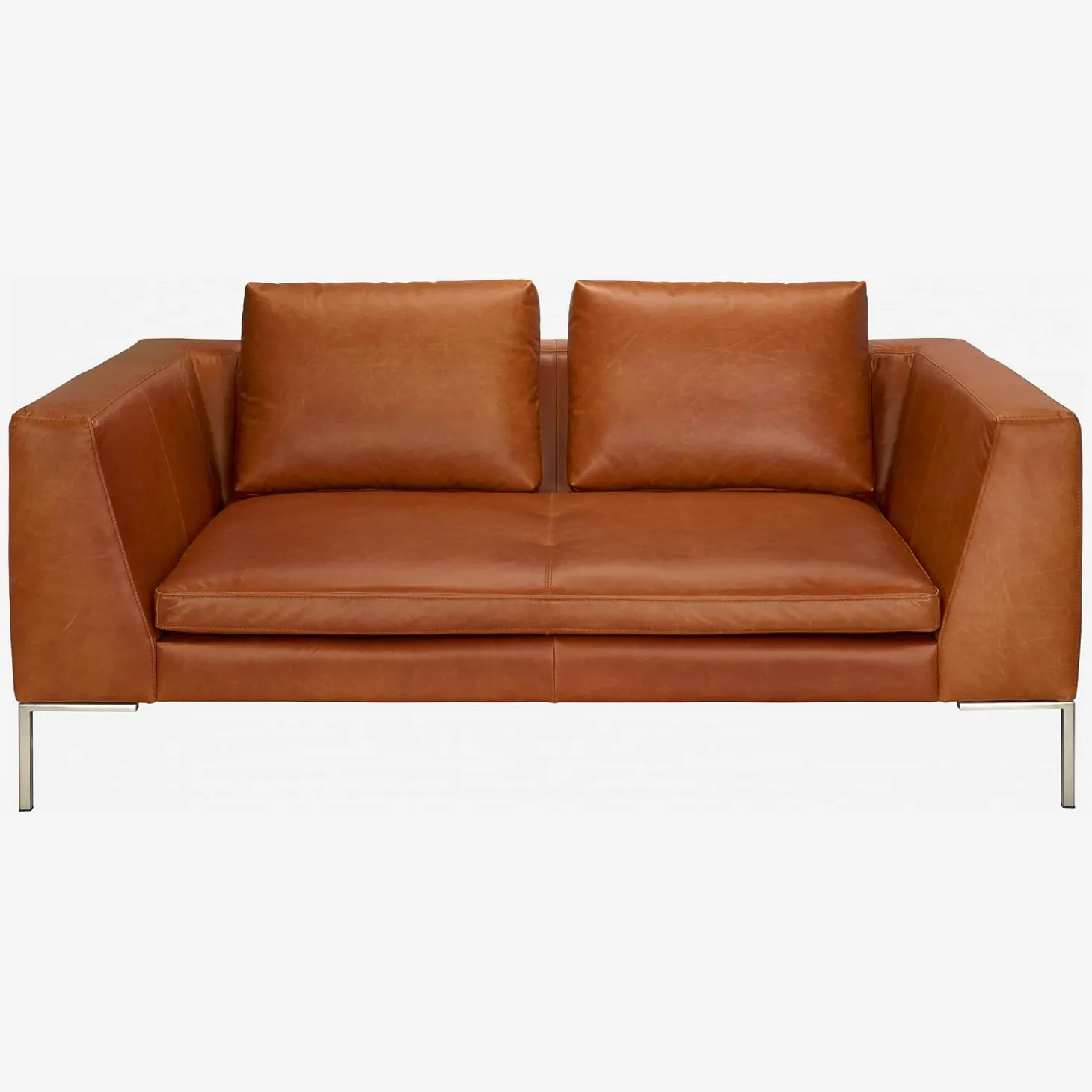 Le canapé 2 places Montino en cuir Vintage Leather marron cognac invite à la détente avec son assise moelleuse et ses accoudoirs hauts. Classiques et élégantes, ses lignes élancées et son design intemporel en feront la pièce maîtresse de votre salon.
