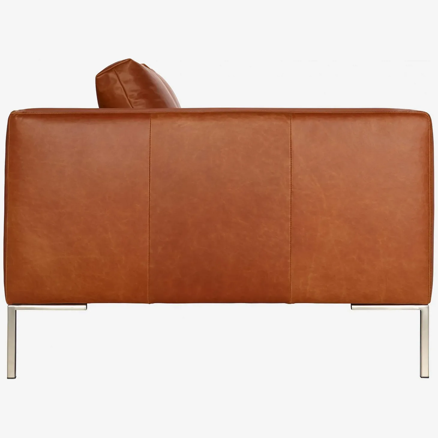 Charge maximale supportée : 260 kgAssise rectiligne, cuir lisse et piètement fin composent un canapé 2 places au style élégant et minimaliste. Une pièce intemporelle qui structure le salon avec légèreté et distinction.