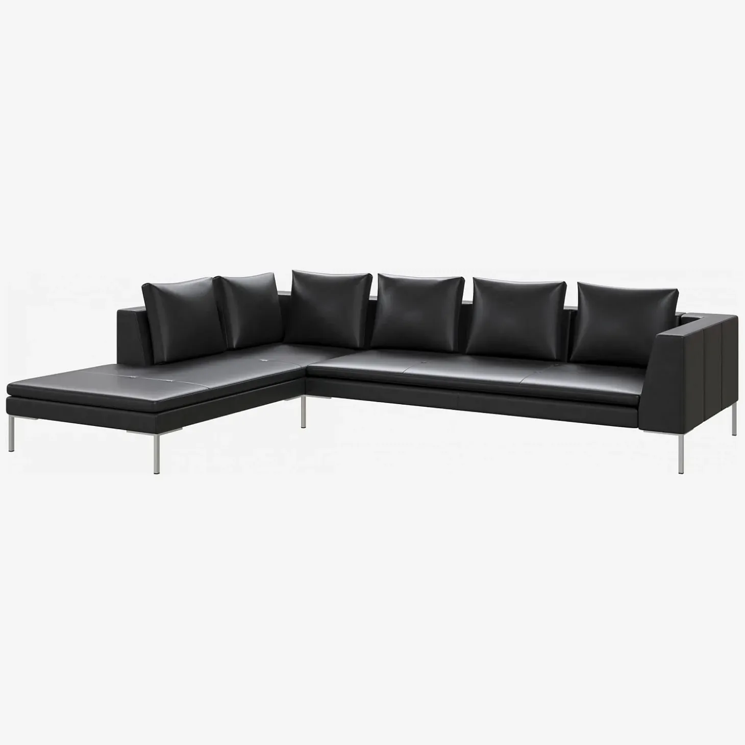 Le grand canapé d’angle gauche Montino en cuir Savoy noir obsidienne invite à la détente avec son assise moelleuse et ses accoudoirs hauts. Classiques et élégantes, ses lignes élancées et son design intemporel en feront la pièce maîtresse de votre salon.