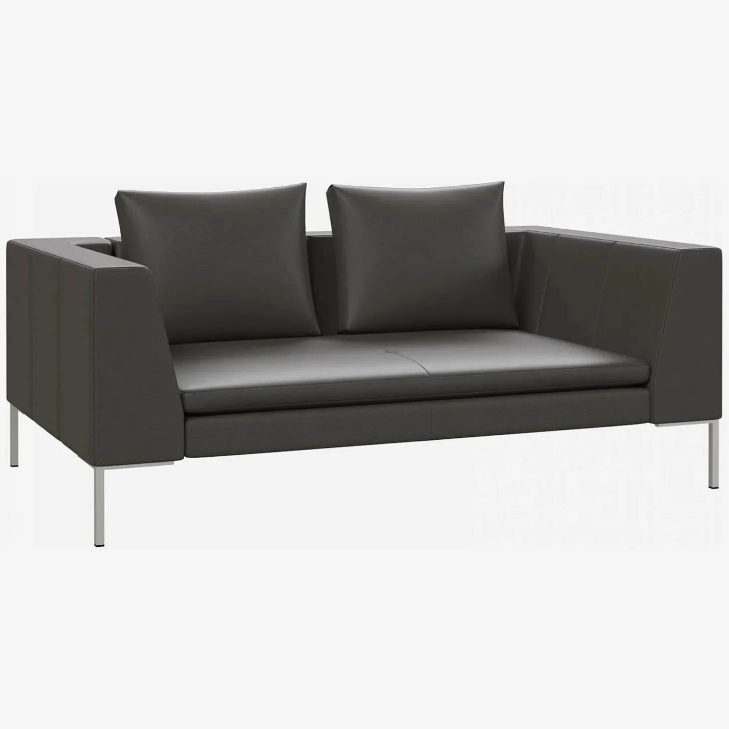 Charge maximale supportée : 260 kgAssise rectiligne, cuir lisse et piètement fin composent un canapé 2 places au style élégant et minimaliste. Une pièce intemporelle qui structure le salon avec légèreté et distinction.