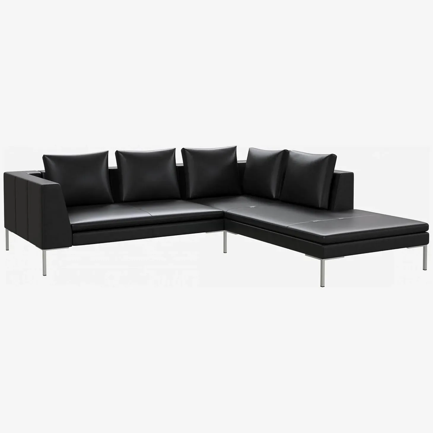 Charge maximale supportée : 520 kgMontino joue la carte de l’élégance minimaliste avec ses lignes élancées et son piètement fin. Ce canapé d’angle combine cuir et assise moelleuse pour une détente chic et contemporaine.