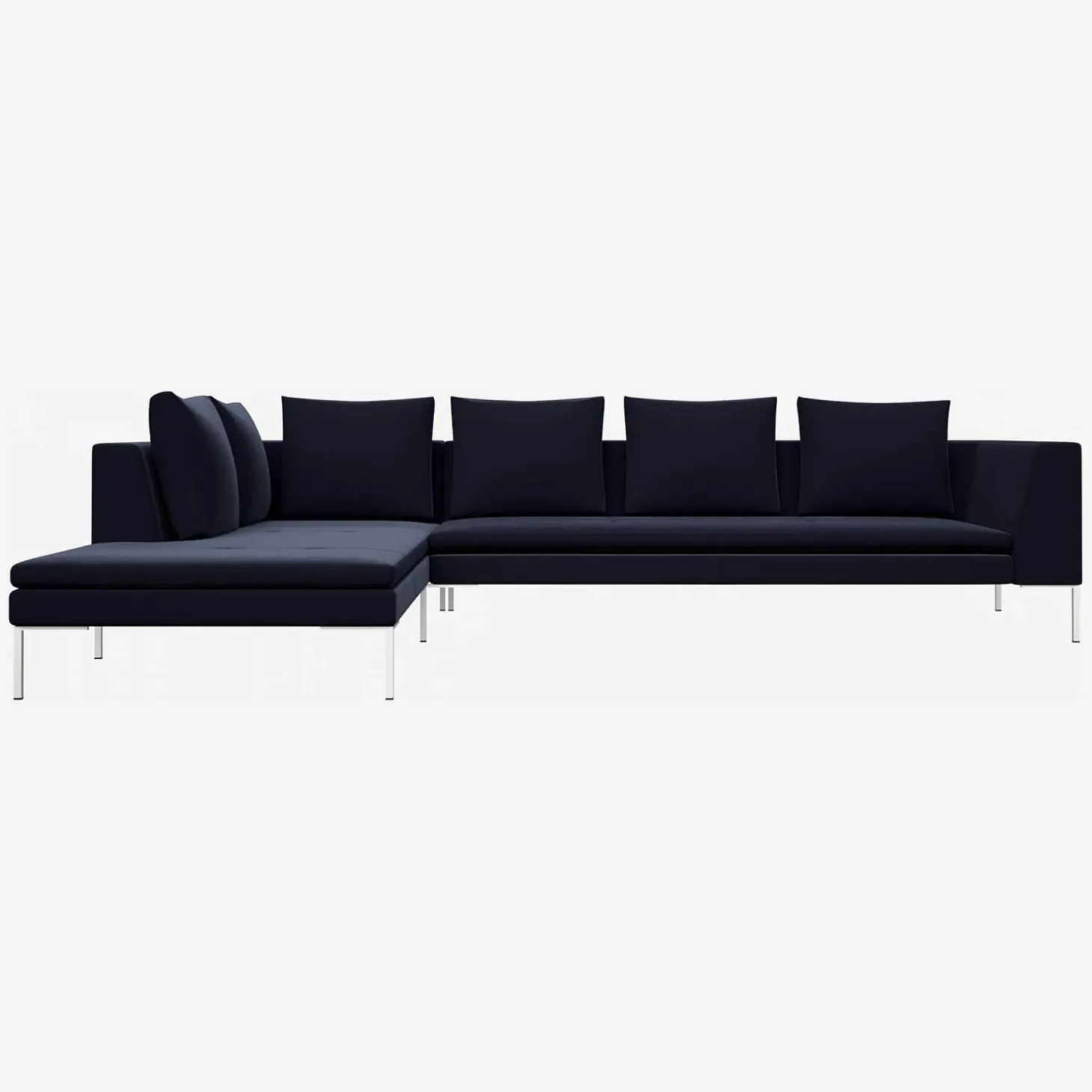 Charge maximale supportée : 650 kgLignes élancées, velours profond et piètement délicat composent un canapé d’angle à l’élégance intemporelle. Un modèle contemporain qui s’inspire du minimalisme urbain pour structurer le salon avec légèreté.