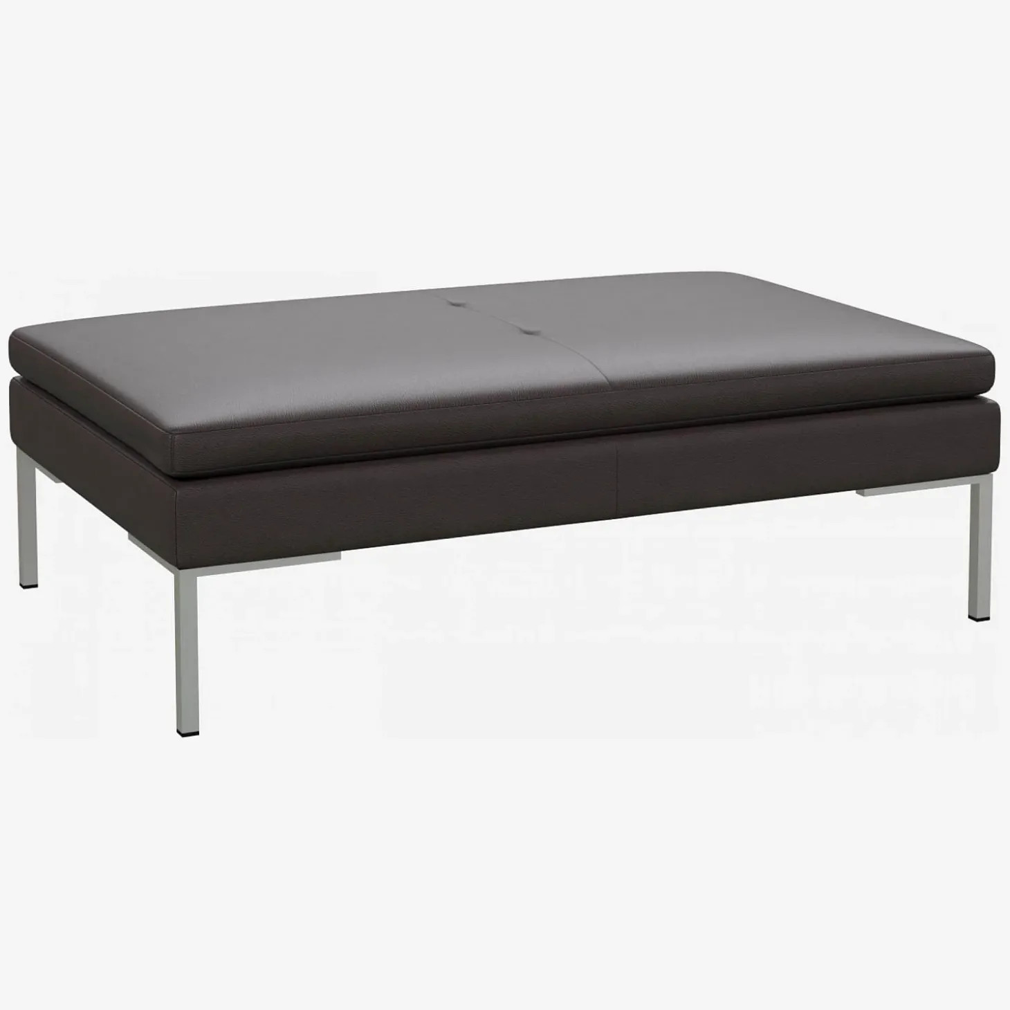 Pieds : acier brossé**Fabriqué en Europe**Montino prolonge le confort avec un repose-pieds en cuir aux lignes sobres. Un élément élégant et fonctionnel, conçu pour accompagner les assises de la même gamme dans un esprit contemporain.