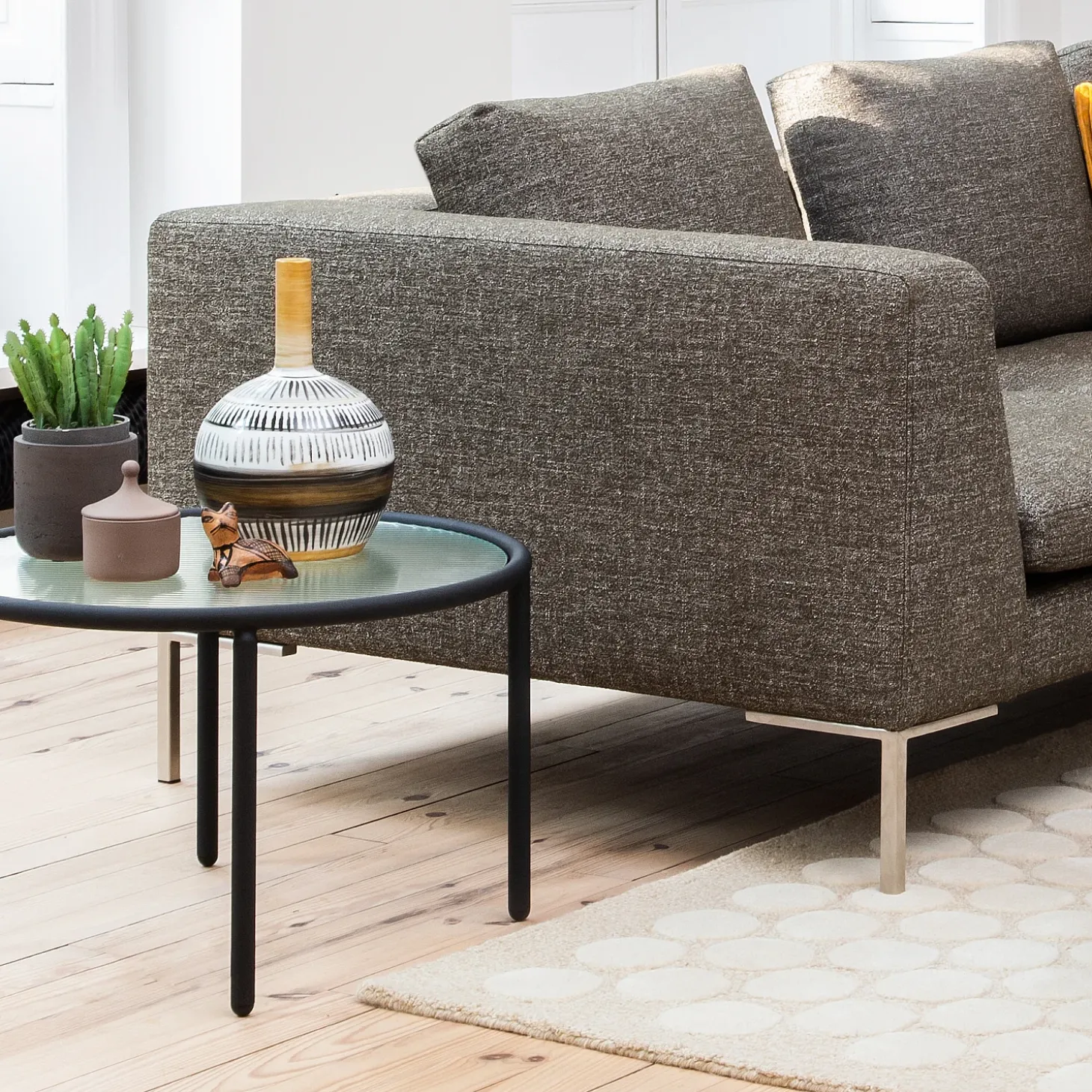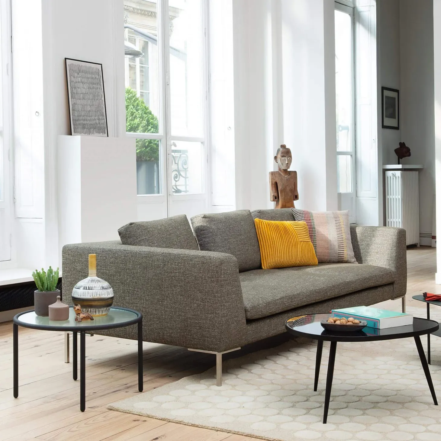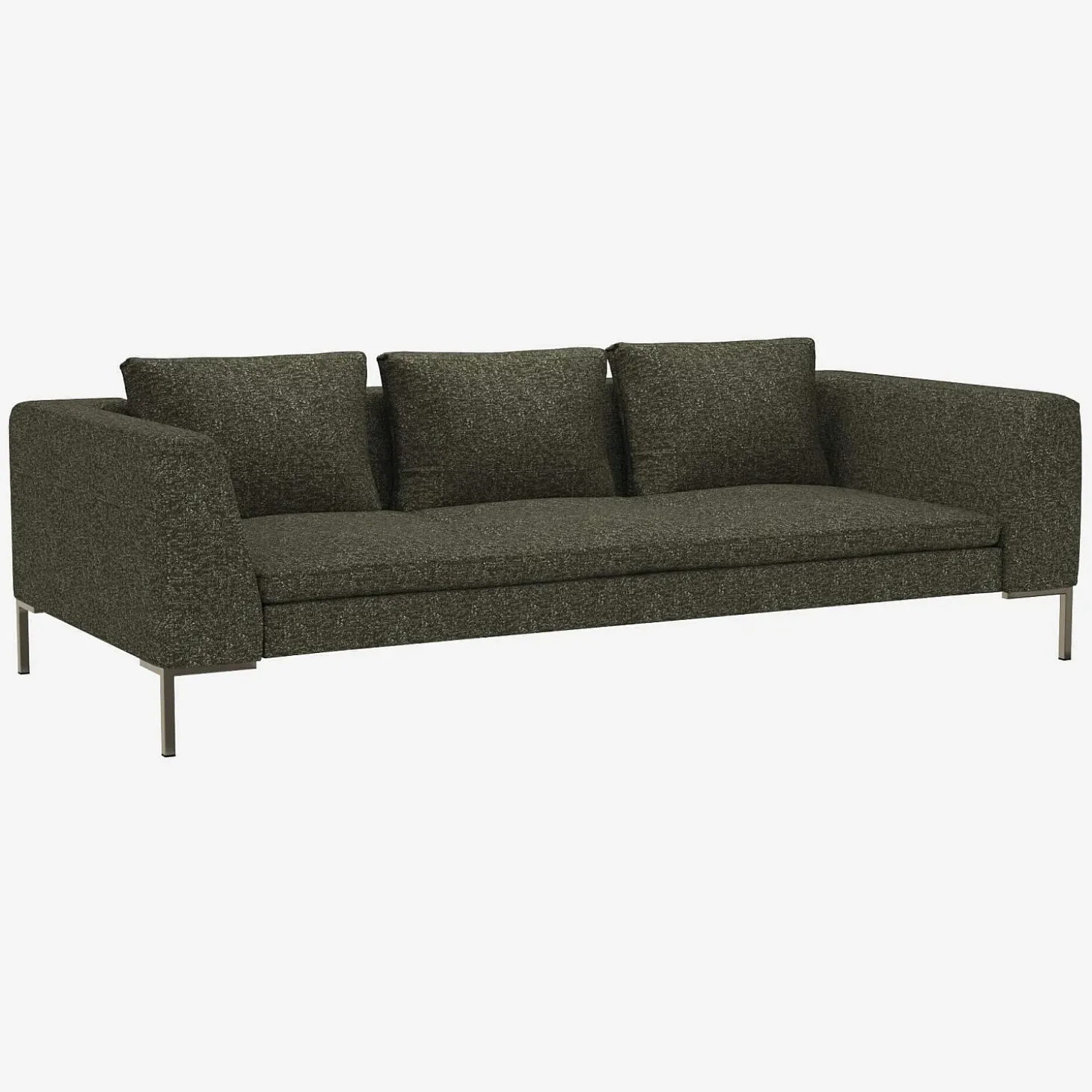 Charge maximale supportée : 390 kgLignes équilibrées, tissu et piètement fin définissent ce canapé 3 places à l’esthétique sobre et contemporaine. Une assise élégante qui s’intègre naturellement dans un salon d’inspiration minimaliste.