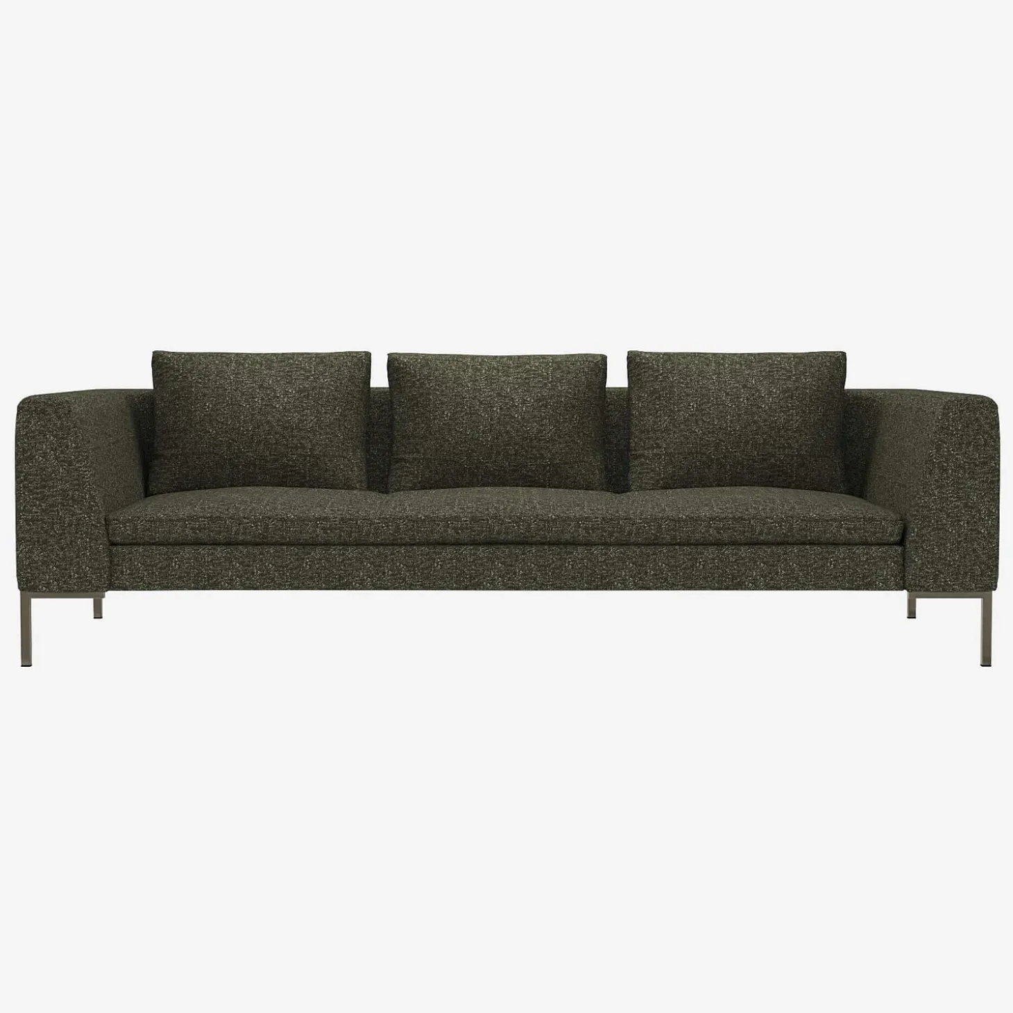 Le canapé 3 places Montino en tissu Lucca vert lichen invite à la détente avec son assise moelleuse et ses accoudoirs hauts. Classiques et élégantes, ses lignes élancées et son design intemporel en feront la pièce maîtresse de votre salon.