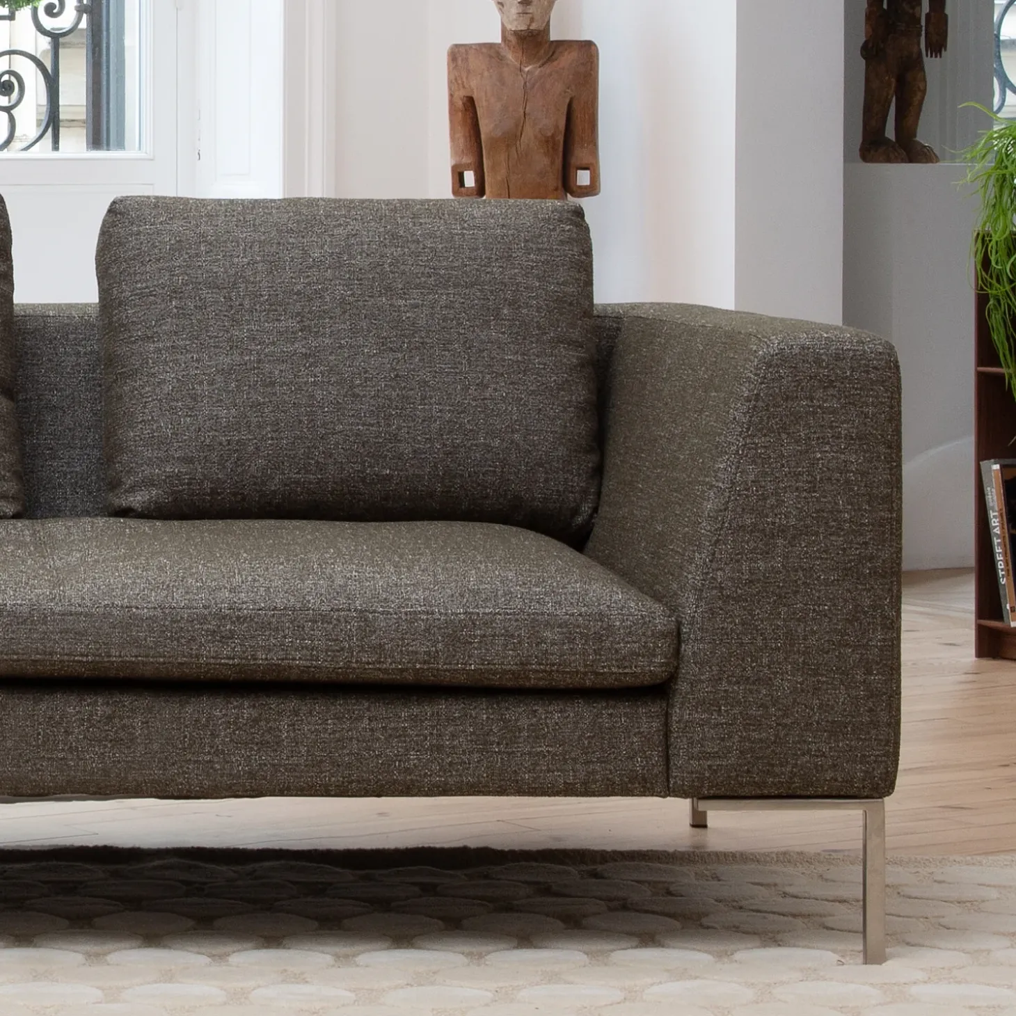 Garnissage de l’assise : plumes et mousse polyuréthane haute résilience 30 kg/m3