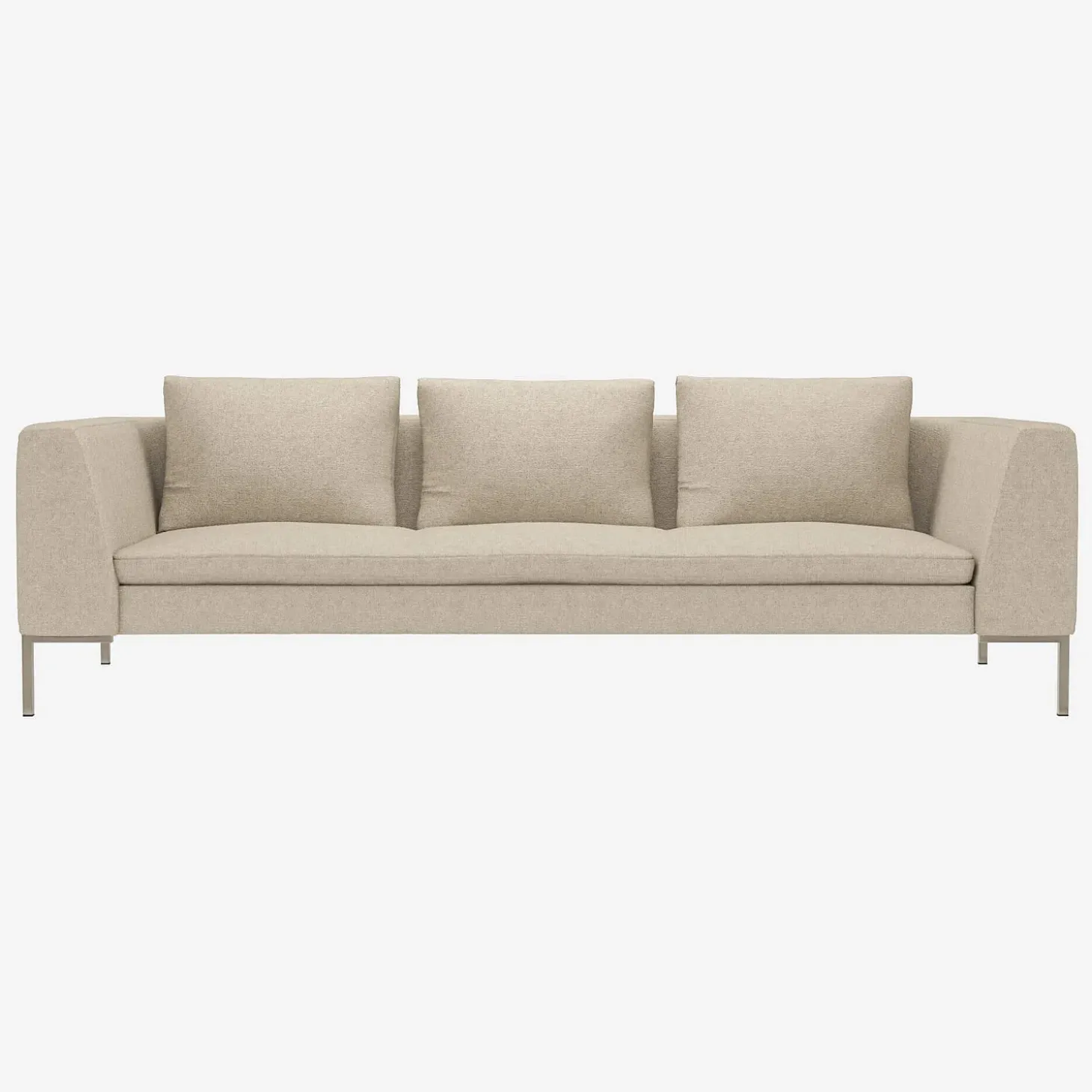 Charge maximale supportée : 390 kgLignes équilibrées, tissu et piètement fin définissent ce canapé 3 places à l’esthétique sobre et contemporaine. Une assise élégante qui s’intègre naturellement dans un salon d’inspiration minimaliste.