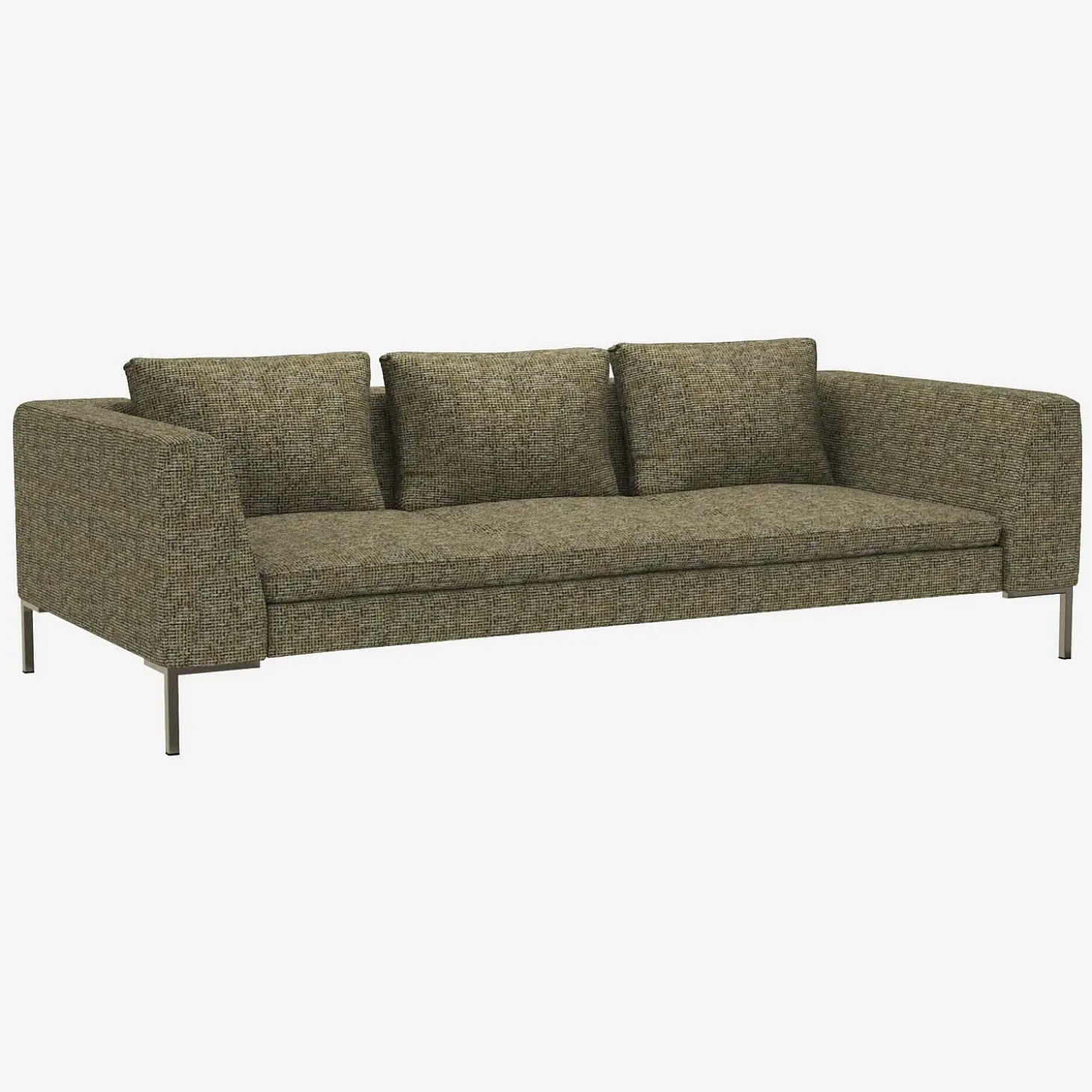 Charge maximale supportée : 650 kgLignes équilibrées, tissu et piètement fin définissent ce canapé 3 places à l’esthétique sobre et contemporaine. Une assise élégante qui s’intègre naturellement dans un salon d’inspiration minimaliste.