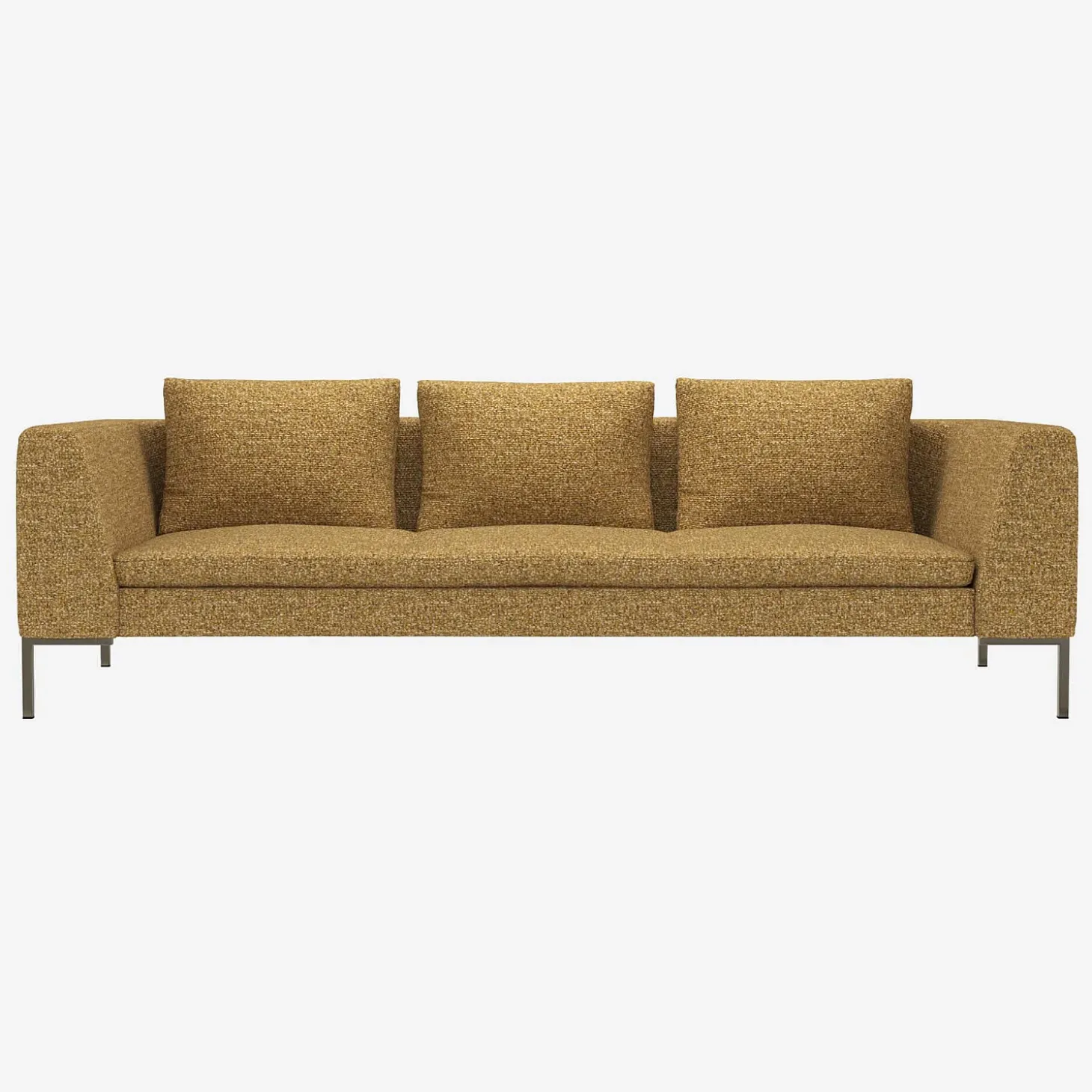 Charge maximale supportée : 390 kgLignes équilibrées, tissu et piètement fin définissent ce canapé 3 places à l’esthétique sobre et contemporaine. Une assise élégante qui s’intègre naturellement dans un salon d’inspiration minimaliste.