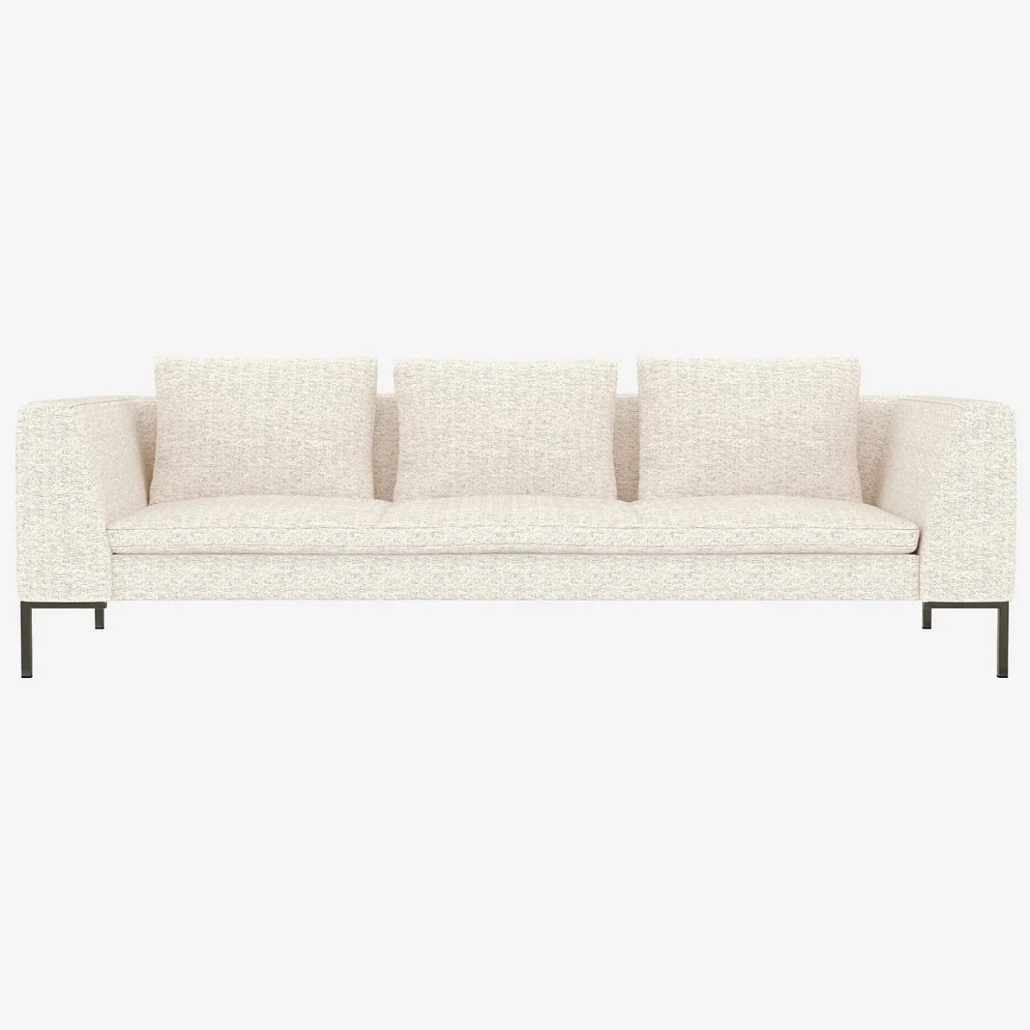 Le canapé 3 places Montino en tissu Bormio blanc albâtre invite à la détente avec son assise moelleuse et ses accoudoirs hauts. Classiques et élégantes, ses lignes élancées et son design intemporel en feront la pièce maîtresse de votre salon.