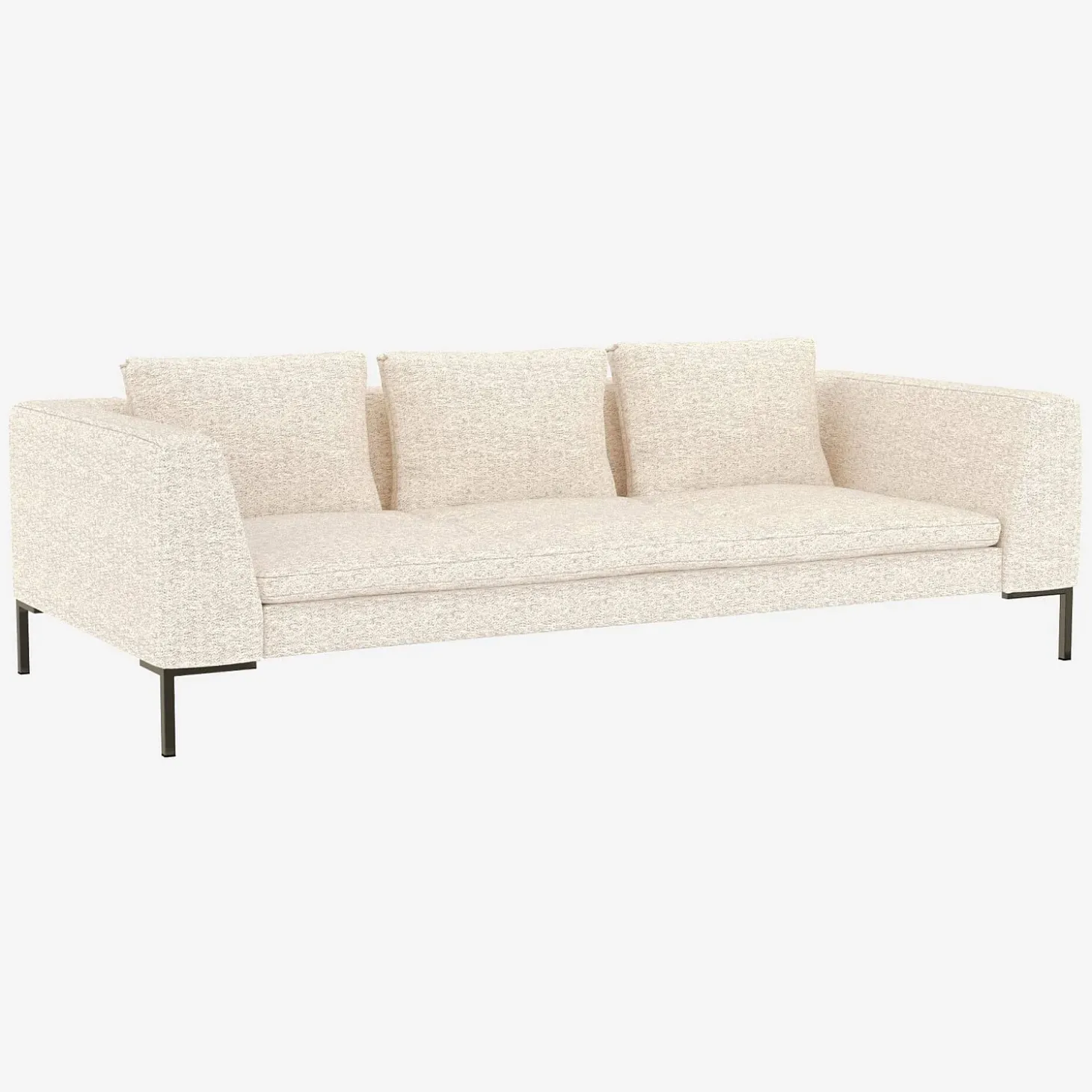 Charge maximale supportée : 650 kgLignes équilibrées, tissu et piètement fin définissent ce canapé 3 places à l’esthétique sobre et contemporaine. Une assise élégante qui s’intègre naturellement dans un salon d’inspiration minimaliste.