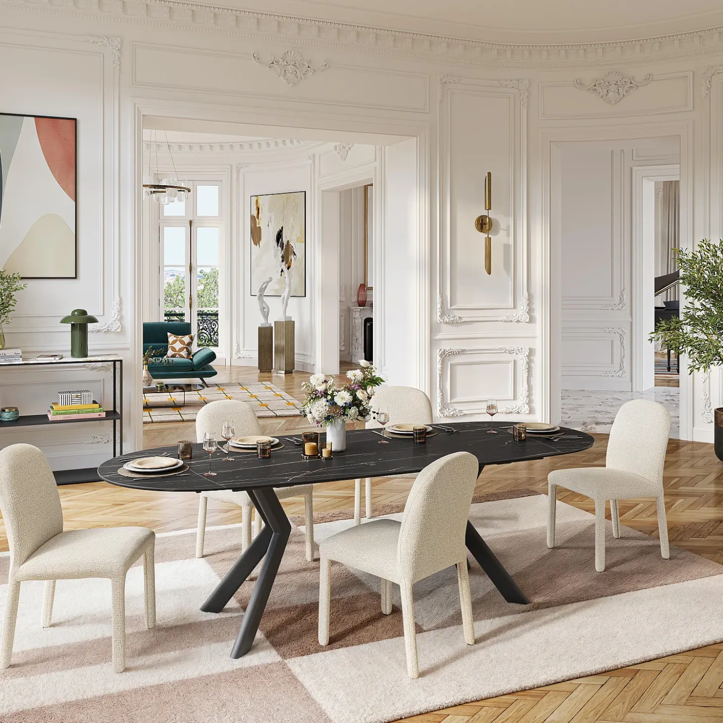 Élégantes et actuelles, les chaises Napili associent un tissu texturé à une silhouette sobre, pour une assise à la fois confortable et intemporelle.