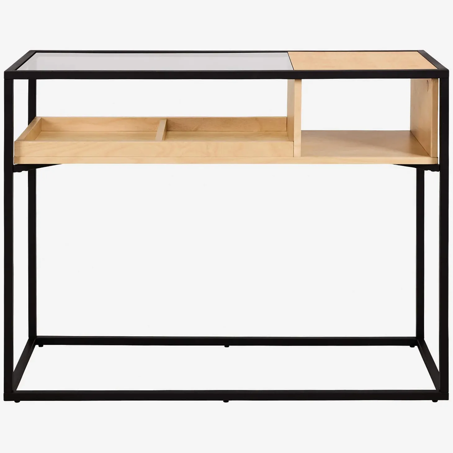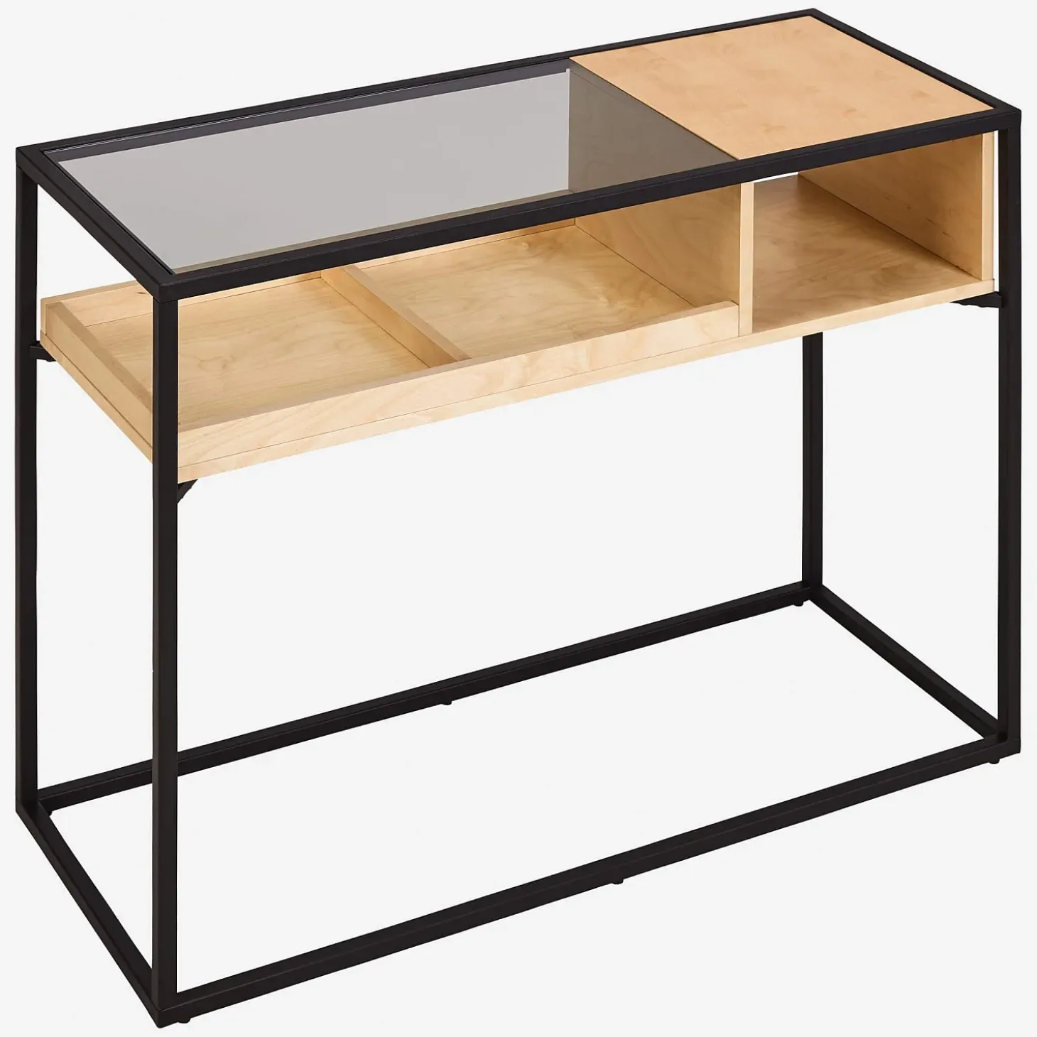 **Fabriqué en Chine**Avec Nathan, la console design signée Helena Pille marie métal noir, bois de bouleau et verre fumé pour un meuble graphique et fonctionnel qui sublime vos intérieurs.