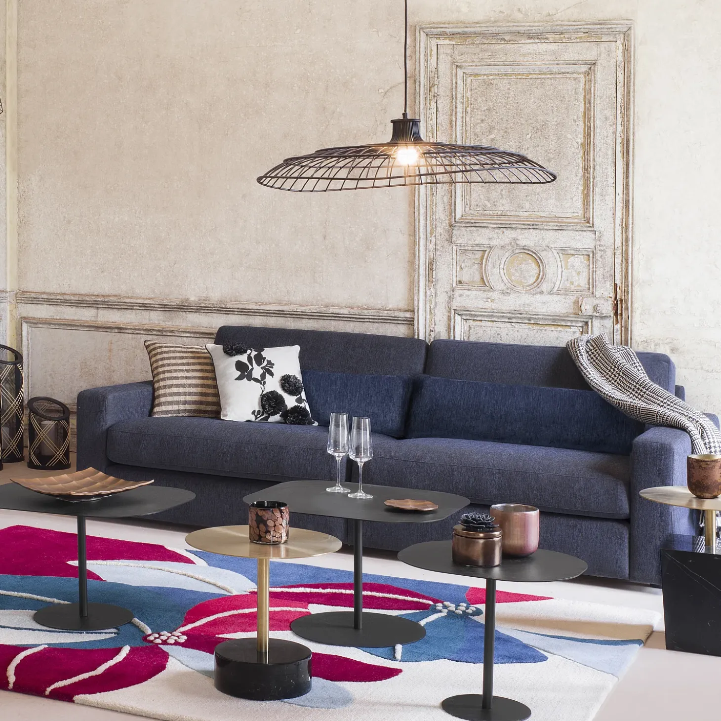 La suspension en métal Nelly est une création du Studio de Design Habitat. Très discrète, elle propose une forme plate et un métal filaire.