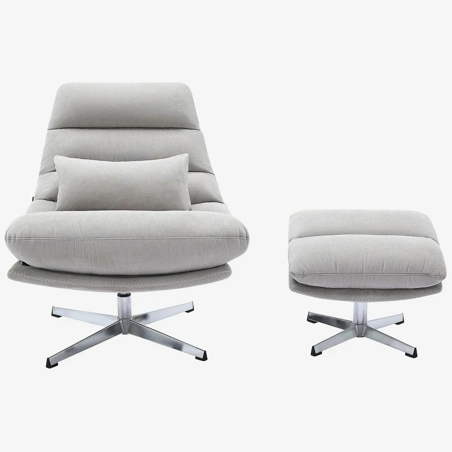 Son repose-pieds assorti, rembourré avec le même soin, permet une détente complète en prolongeant l’expérience du confort.