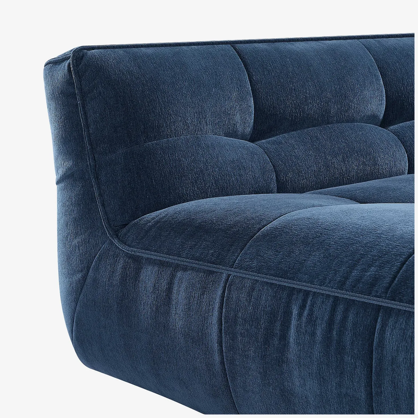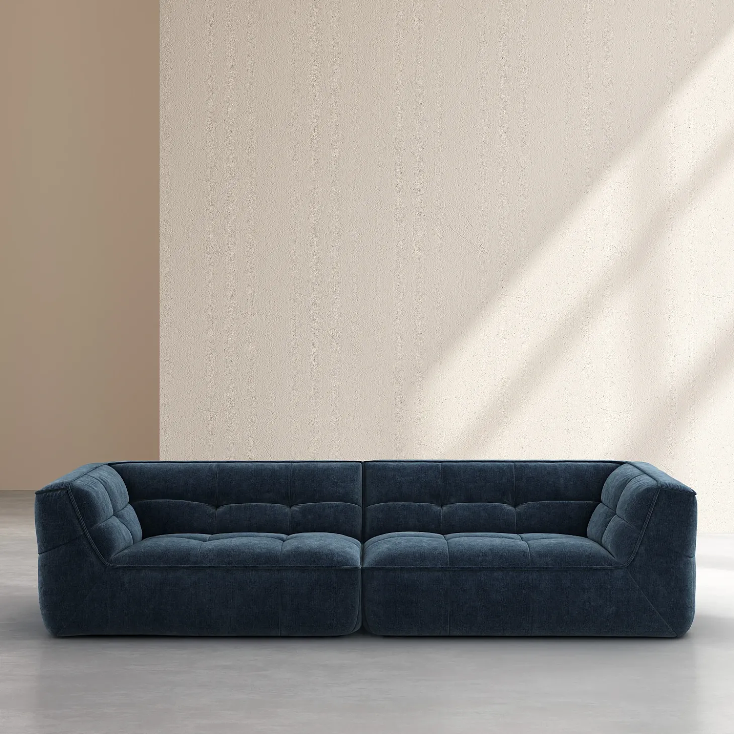 Ce modèle au design raffiné est recouvert d’un tissu bleu océan, il magnifie l’espace en insufflant une atmosphère sophistiquée, audacieuse et résolument contemporaine.