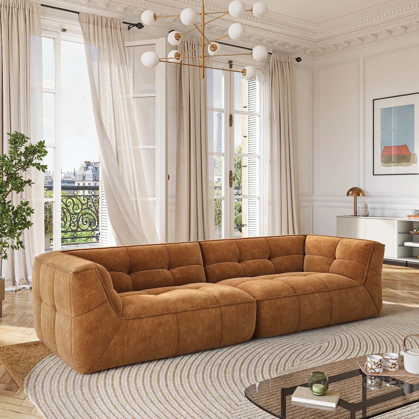 Certaines photos d’ambiance peuvent comporter de légères variations par rapport au modèle réel.Orieto est un canapé droit à l’assise profonde et au matelassage élégant. Une création généreuse et contemporaine, pensée pour conjuguer confort durable et style affirmé