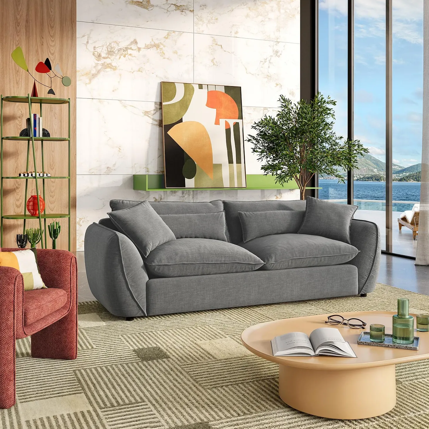 Idéal pour insuffler un environnement convivial et chaleureux, le canapé Oryel allie design intemporel et confort optimal pour des moments de détente prolongés.