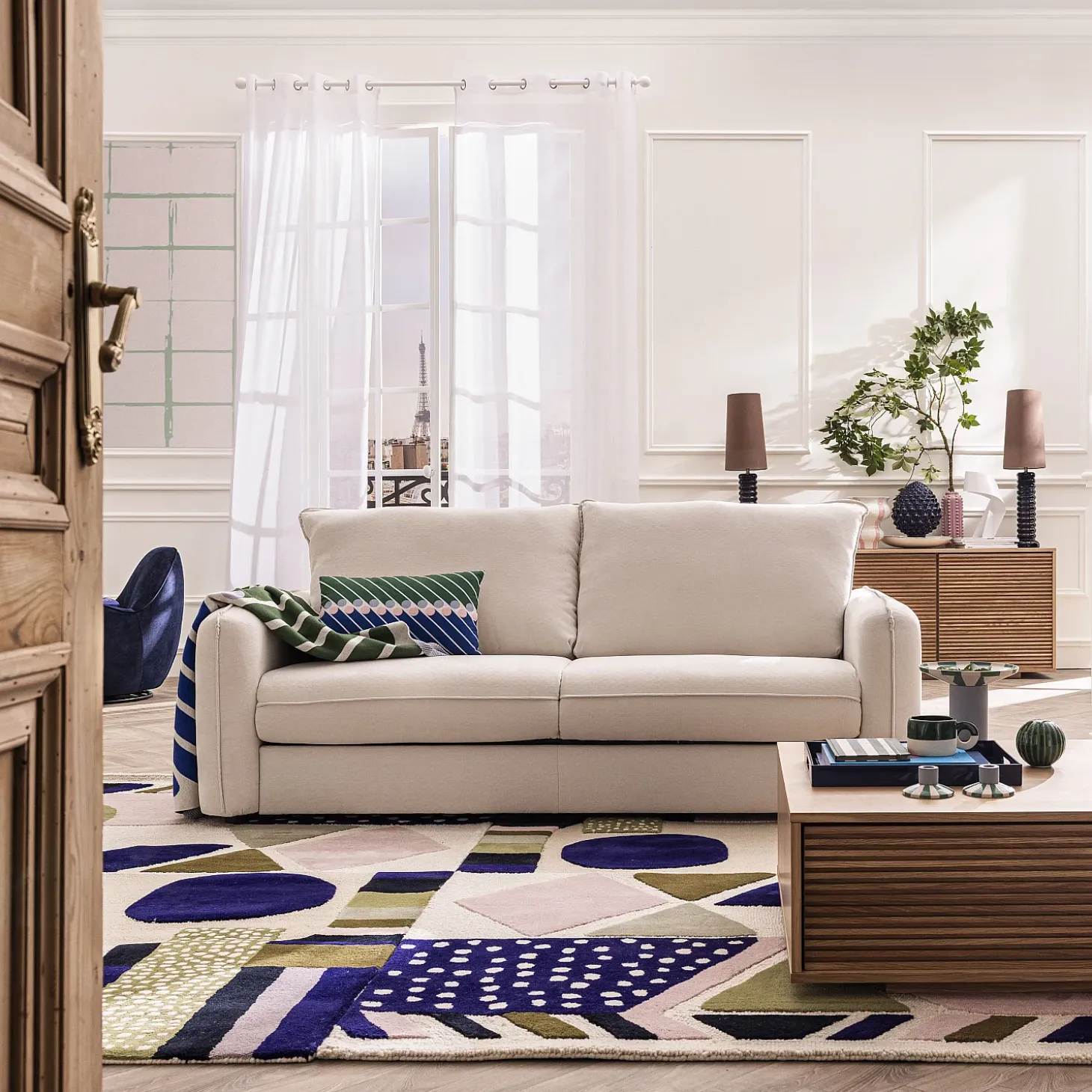 Certaines photos d’ambiance peuvent comporter de légères variations par rapport au modèle réel.Oslo incarne une douceur contemporaine, entre galbes généreux et assise moelleuse. Un canapé convertible à la silhouette aérienne pensée pour créer un havre de confort raffiné.