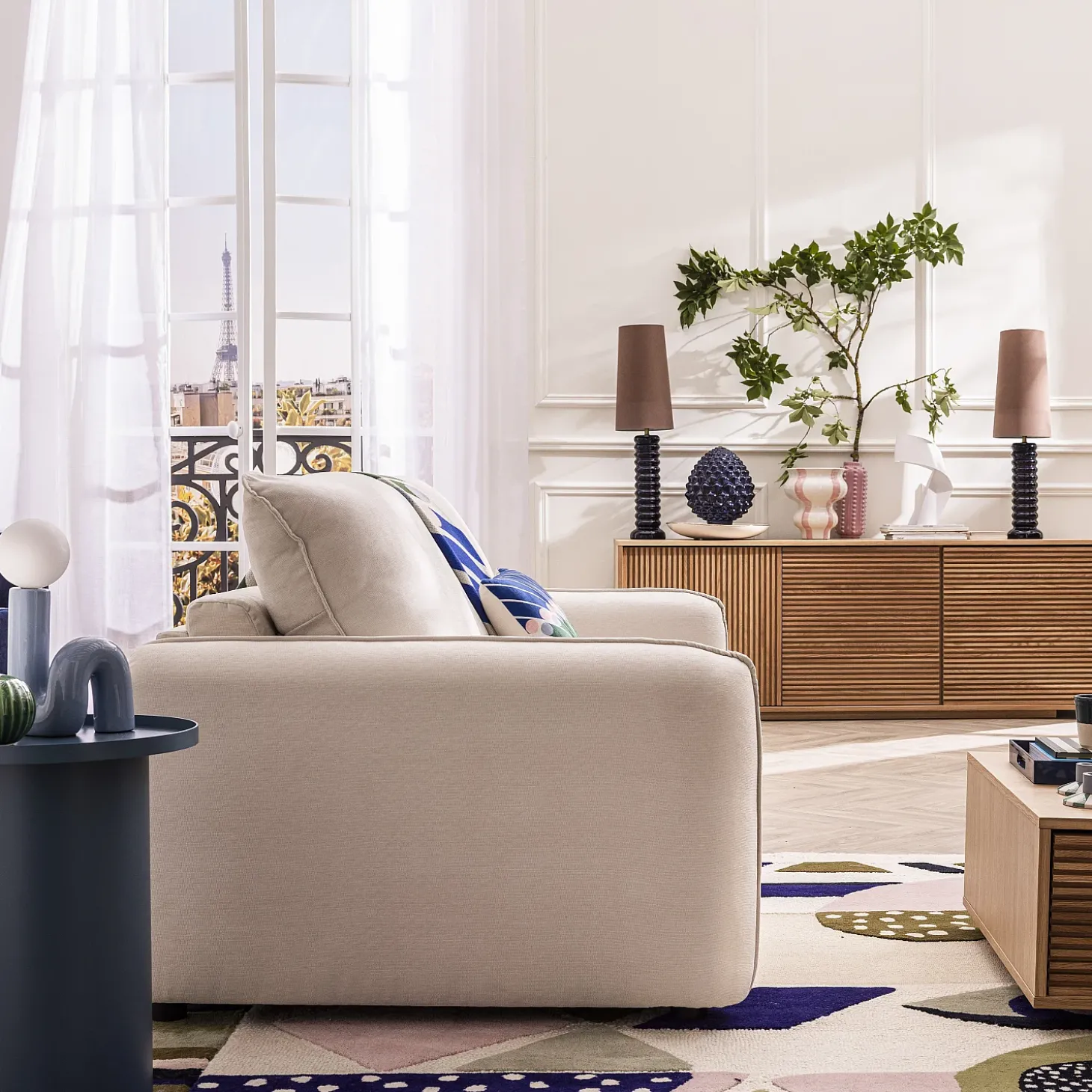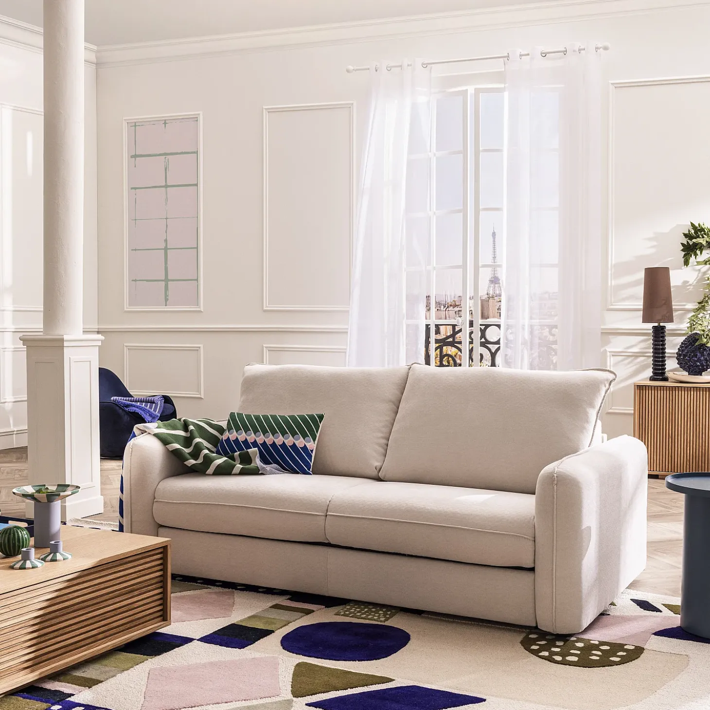 Certaines photos d’ambiance peuvent comporter de légères variations par rapport au modèle réel.Oslo incarne une douceur contemporaine, entre galbes généreux et assise moelleuse. Un canapé convertible à la silhouette aérienne pensée pour créer un havre de confort raffiné.