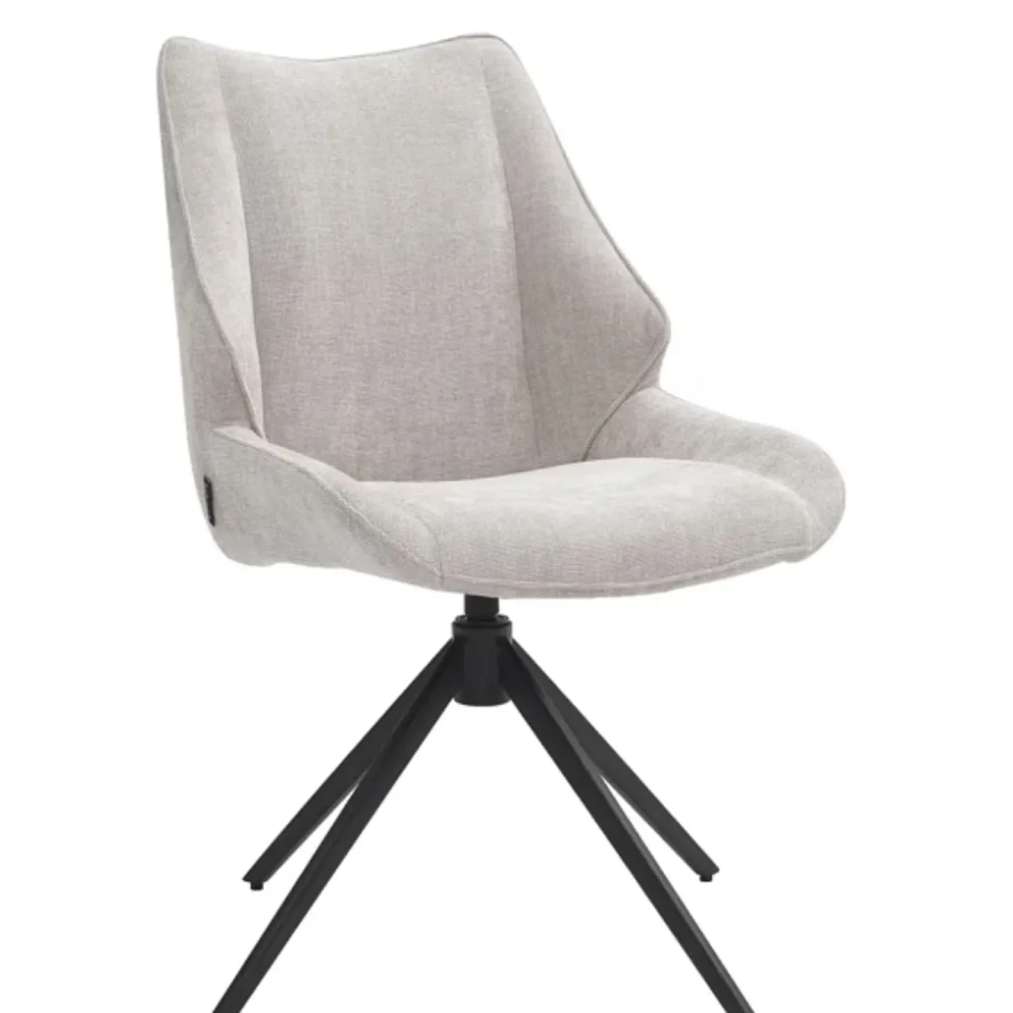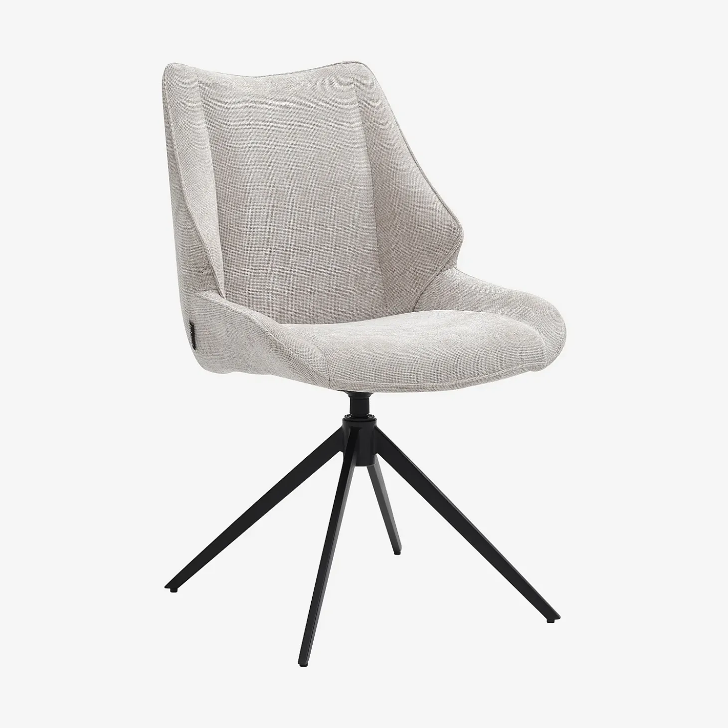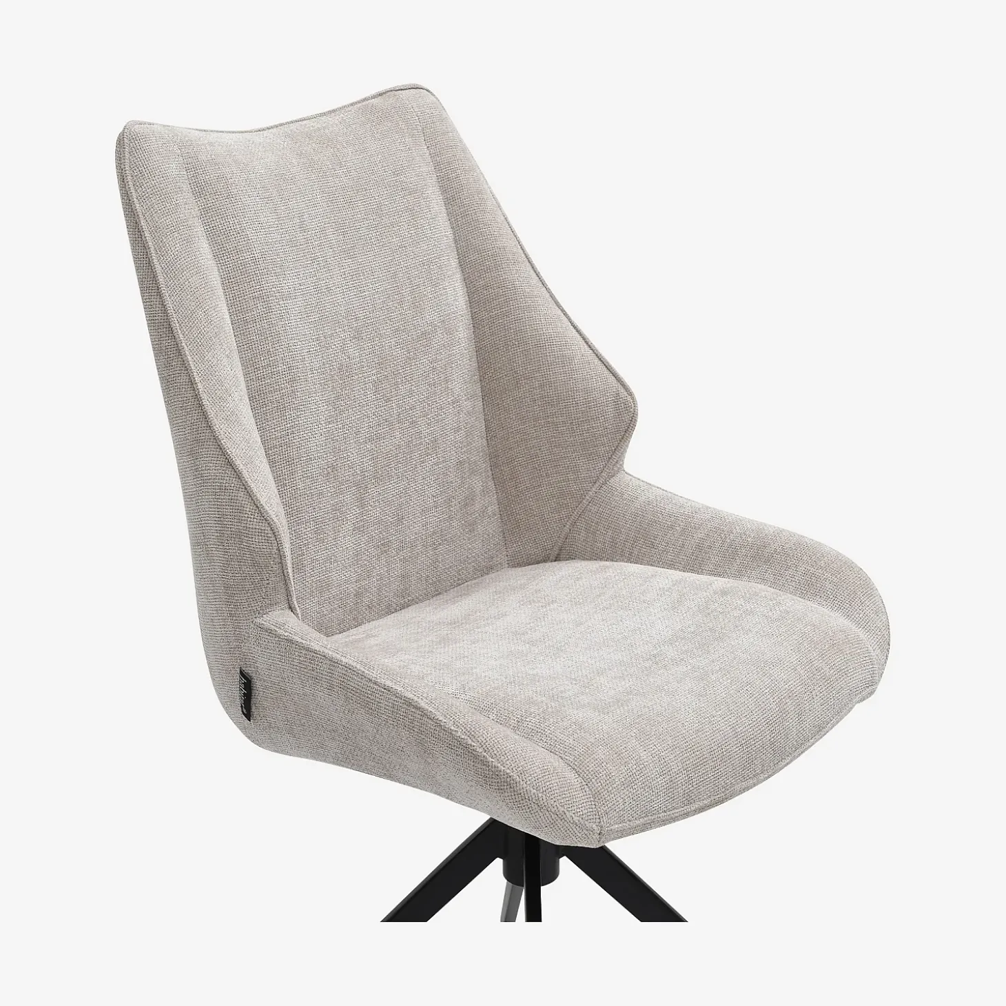 Leur revêtement en tissu chenille, au toucher doux et à l’aspect subtilement texturé, est mis en valeur par une teinte grège sobre. Ce coloris doux souligne l’élégance de la chaise tout en apportant une note apaisante à la pièce.