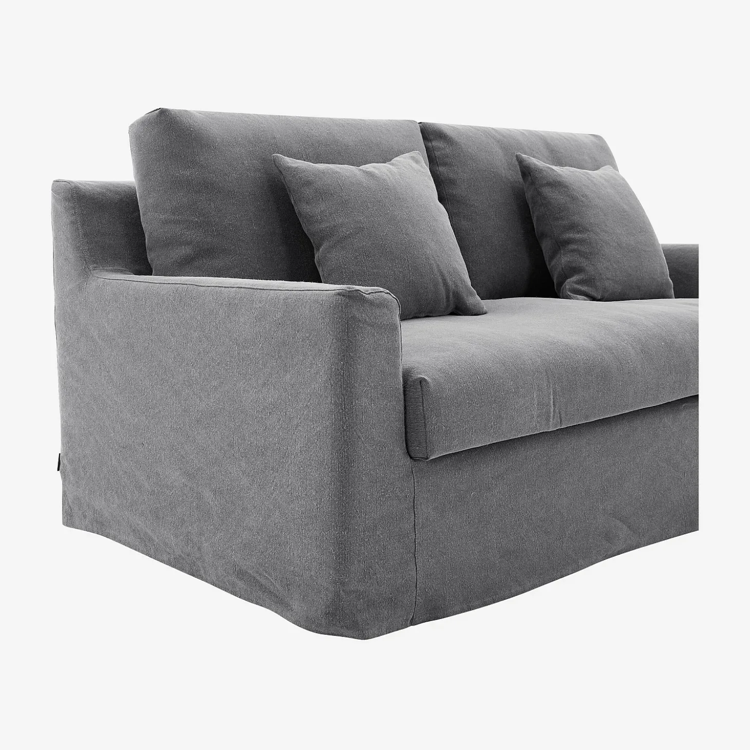 Son garnissage moelleux assure un confort enveloppant, idéal pour s’accorder une parenthèse de repos. Habillé d’un tissu en coton et lin, il présente une texture douce et légèrement irrégulière, qui renforce son charme brut et décontracté. Sa teinte gris ardoise s’intègre facilement aux intérieurs en apportant modernité et profondeur.
