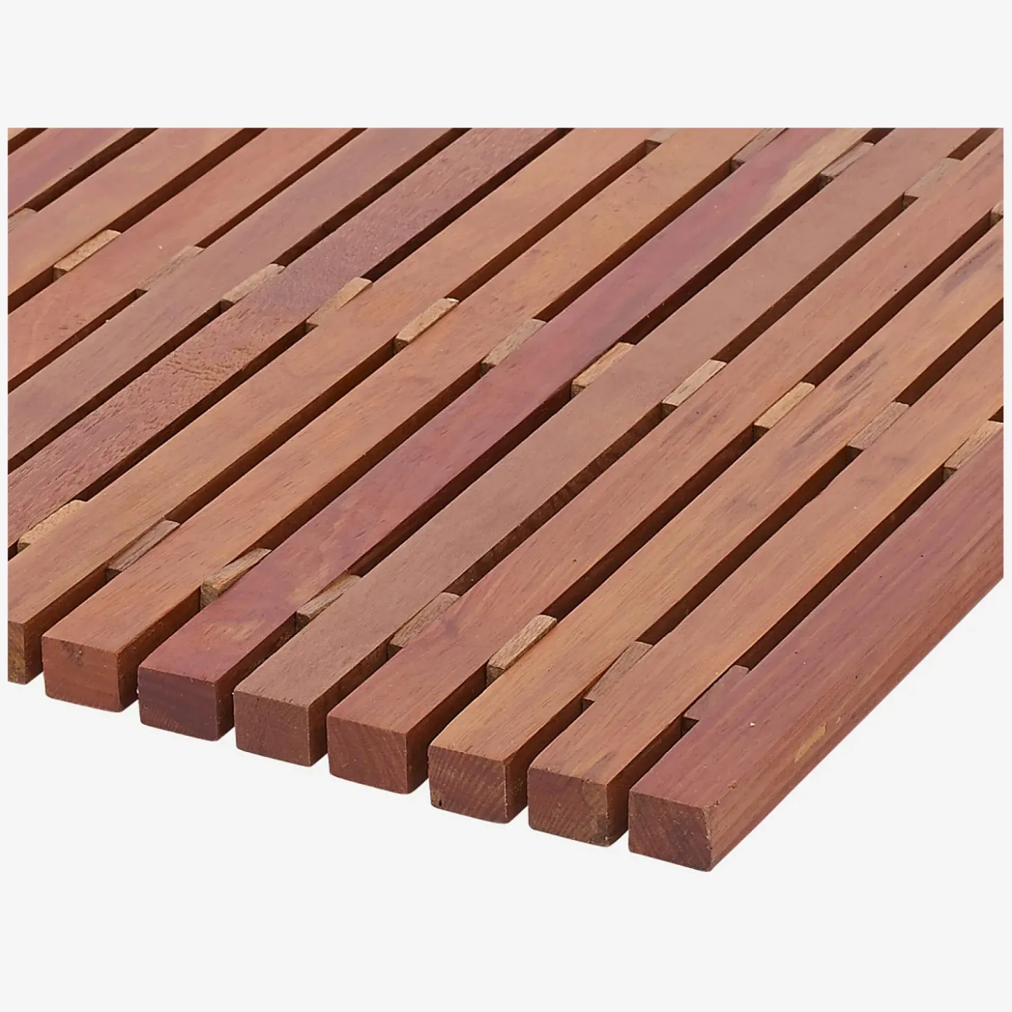 Le caillebotis Papua en bois exotique fera un tapis de bain durable et résistant pour la salle de bain. Le bois, chaleureux et agréable au toucher, est l’alternative au classique tapis de bain en tissu.