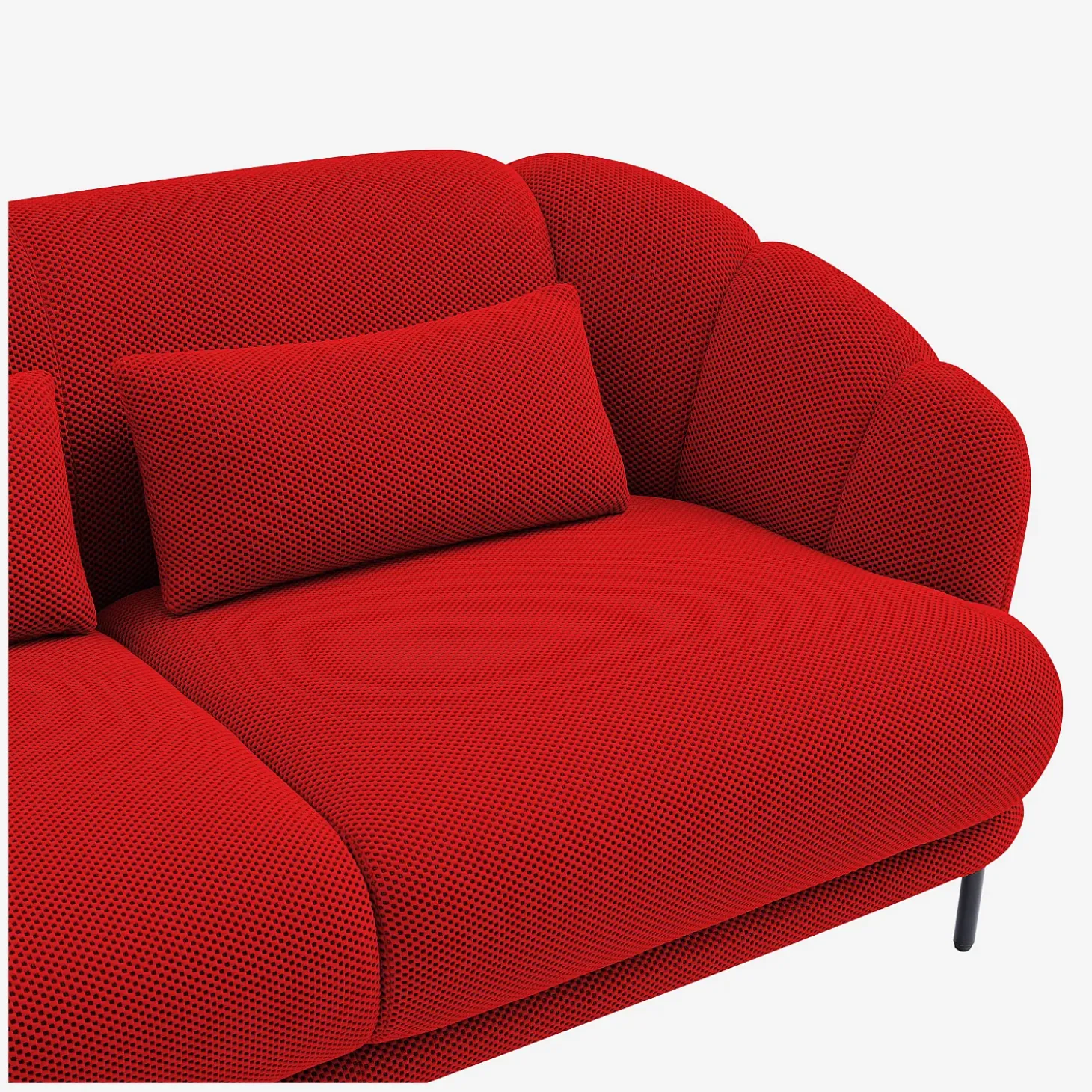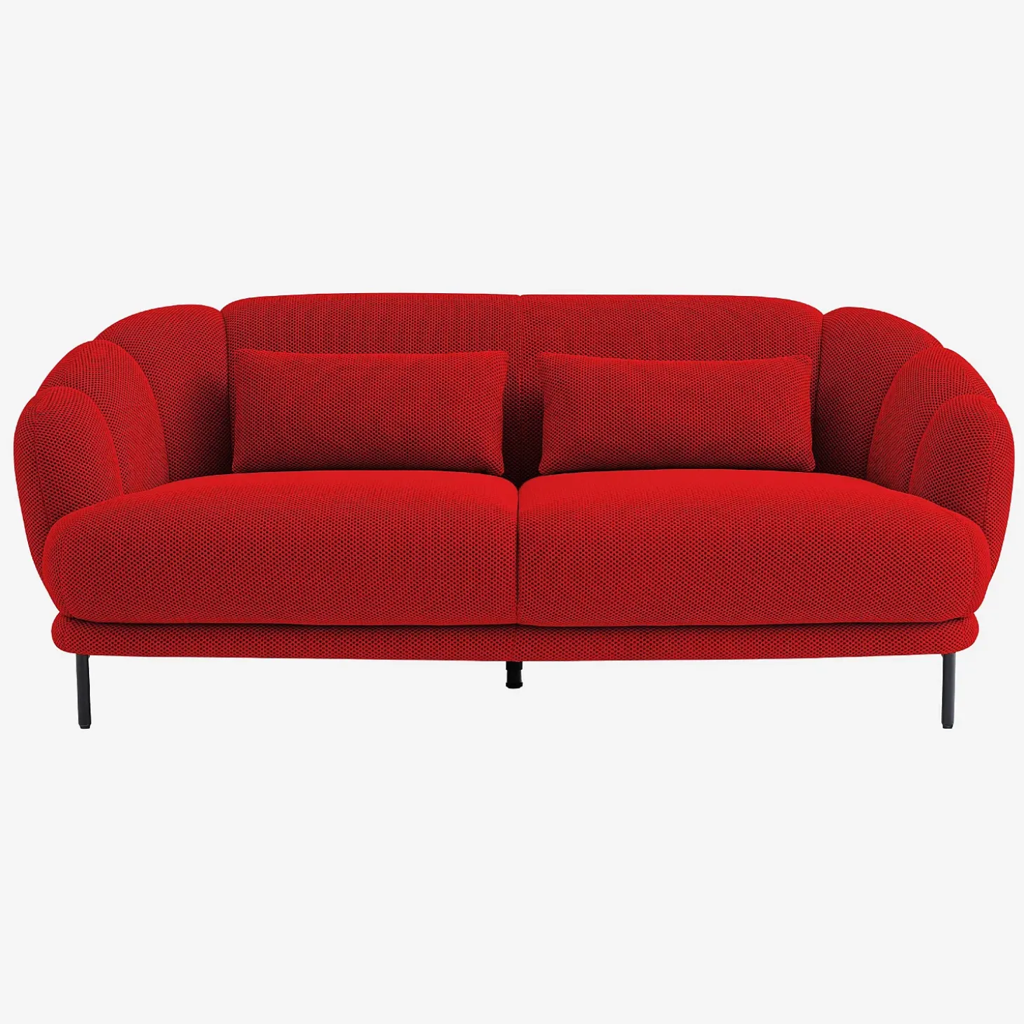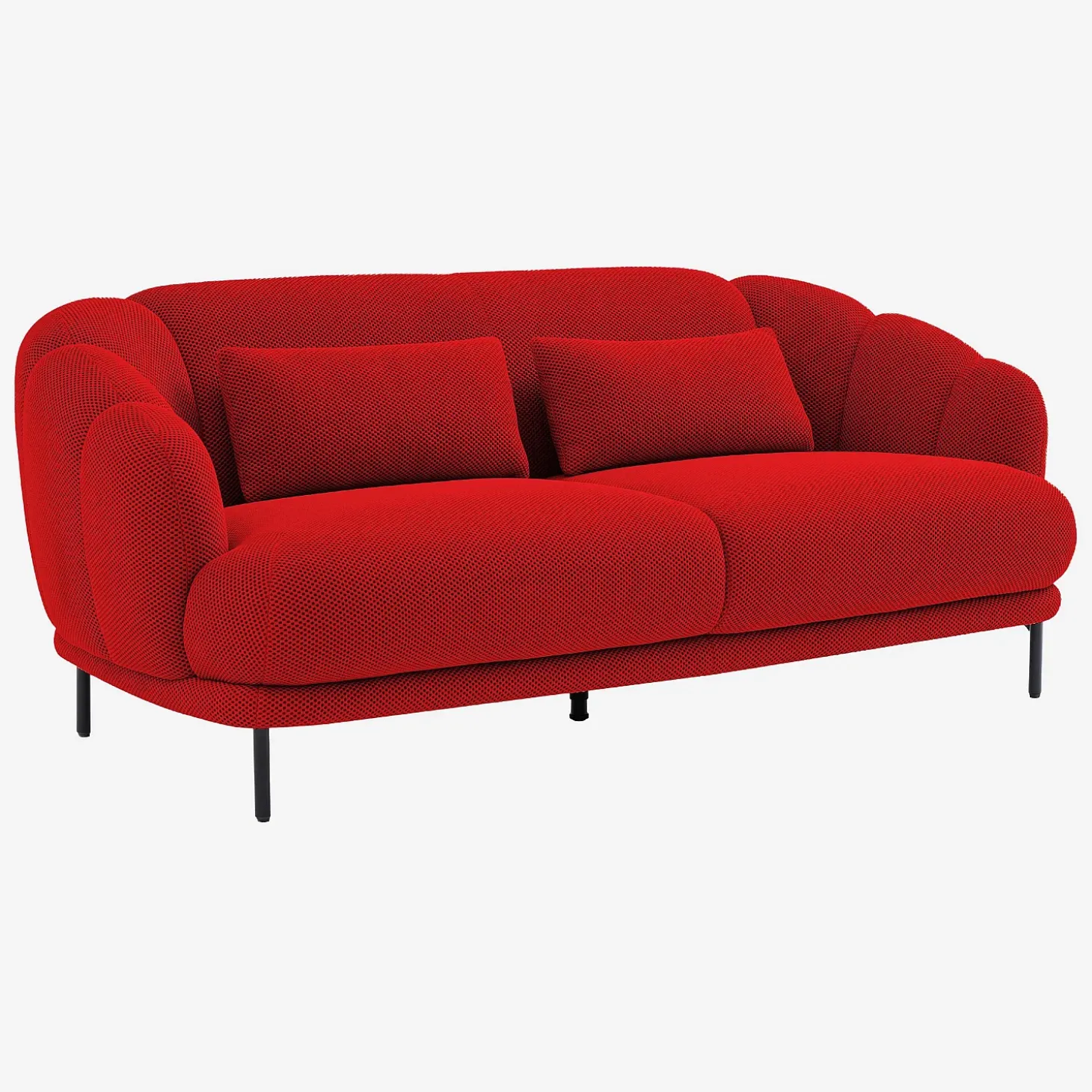 Le canapé 3 places Paraty en tissu 3D insuffle un caractère envoûtant dans le salon. Sa teinte rouge coquelicot éclatante illumine une décoration pour un ensemble glamour et audacieux, renforcé par ses deux coussins assortis.