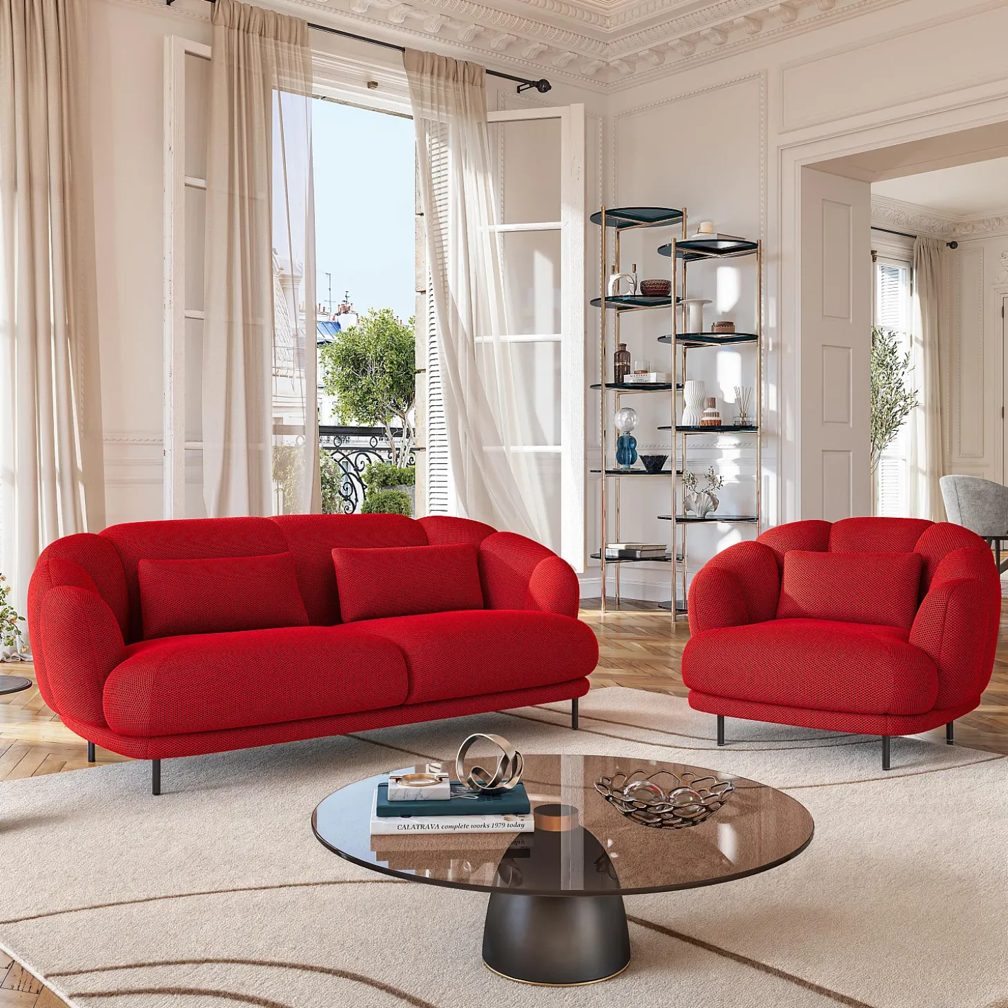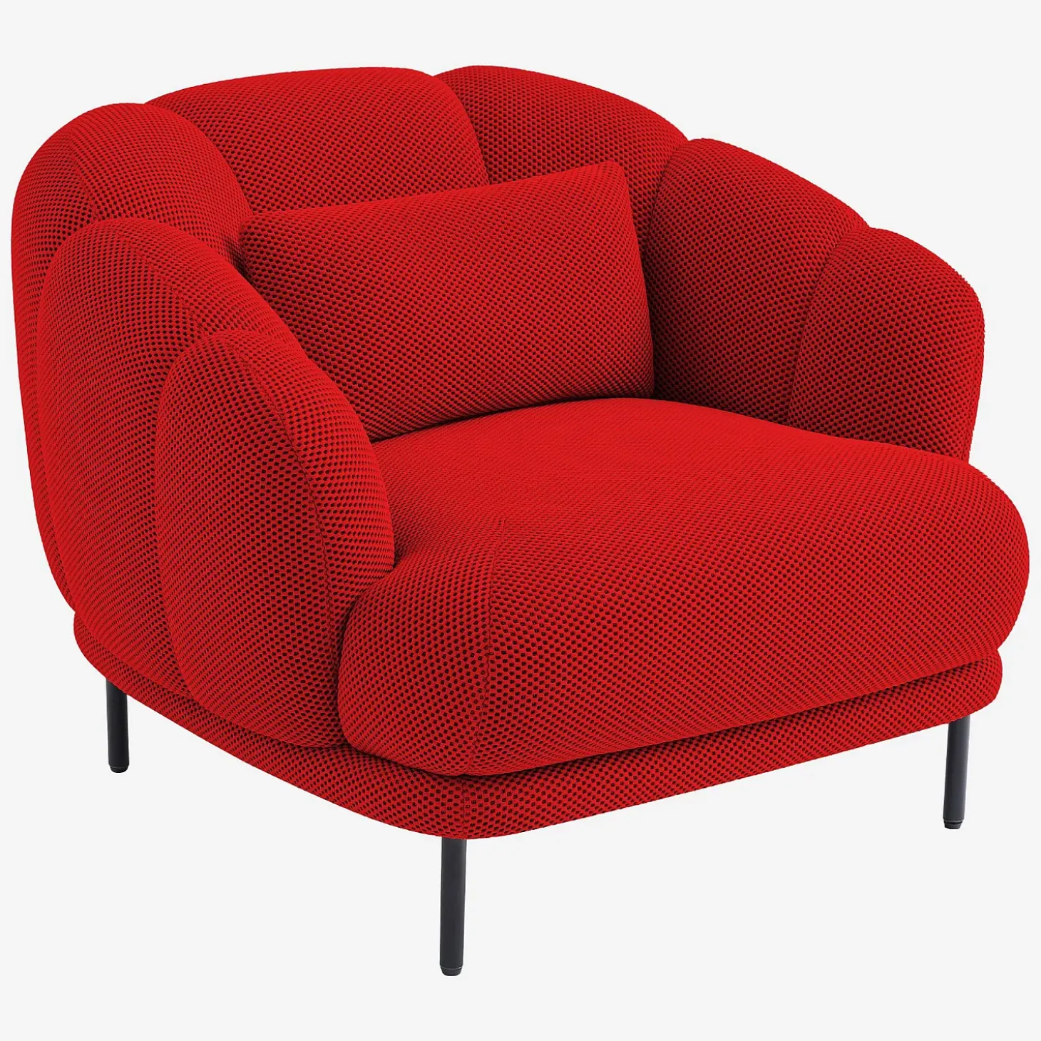 Le fauteuil Paraty en tissu 3D est sublimé par un piètement fin et délicat en métal noir mat, lui conférant une élégance aérienne. Sa teinte rouge coquelicot éclatante illumine une décoration pour un ensemble glamour et audacieux, renforcé par son coussin assorti.