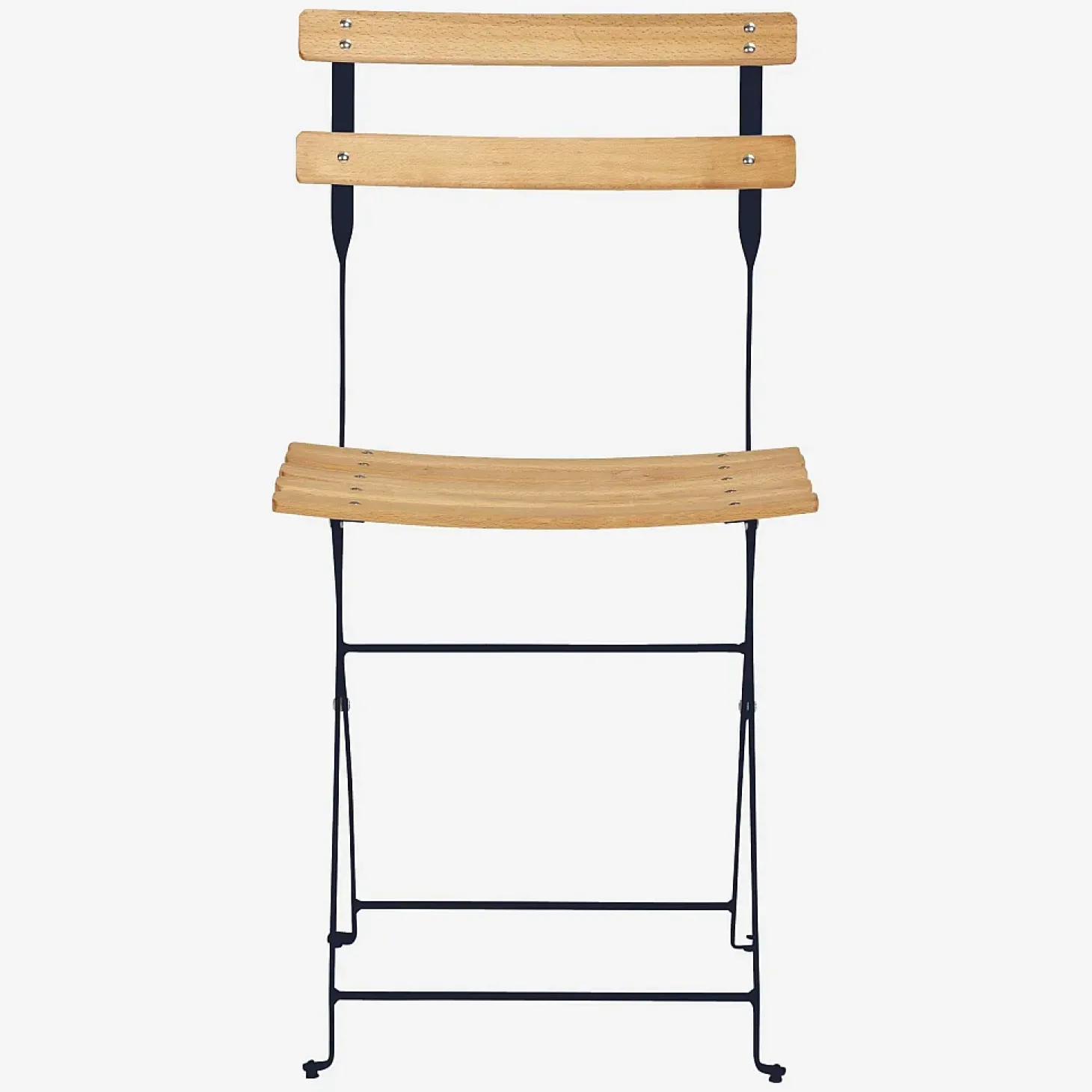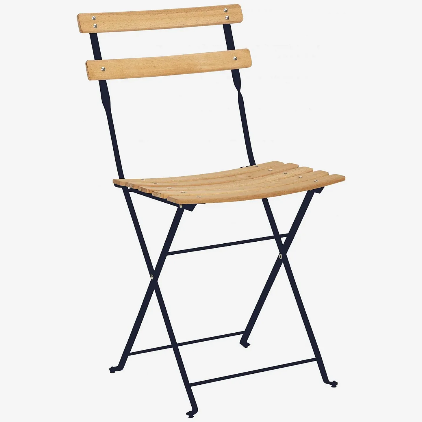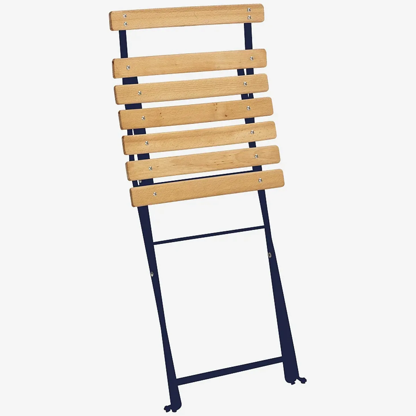 La chaise de jardin Parc en hêtre naturel et acier bleu foncé est une chaise au design minimaliste. Très pratique, cette chaise se plie pour un rangement facile.
