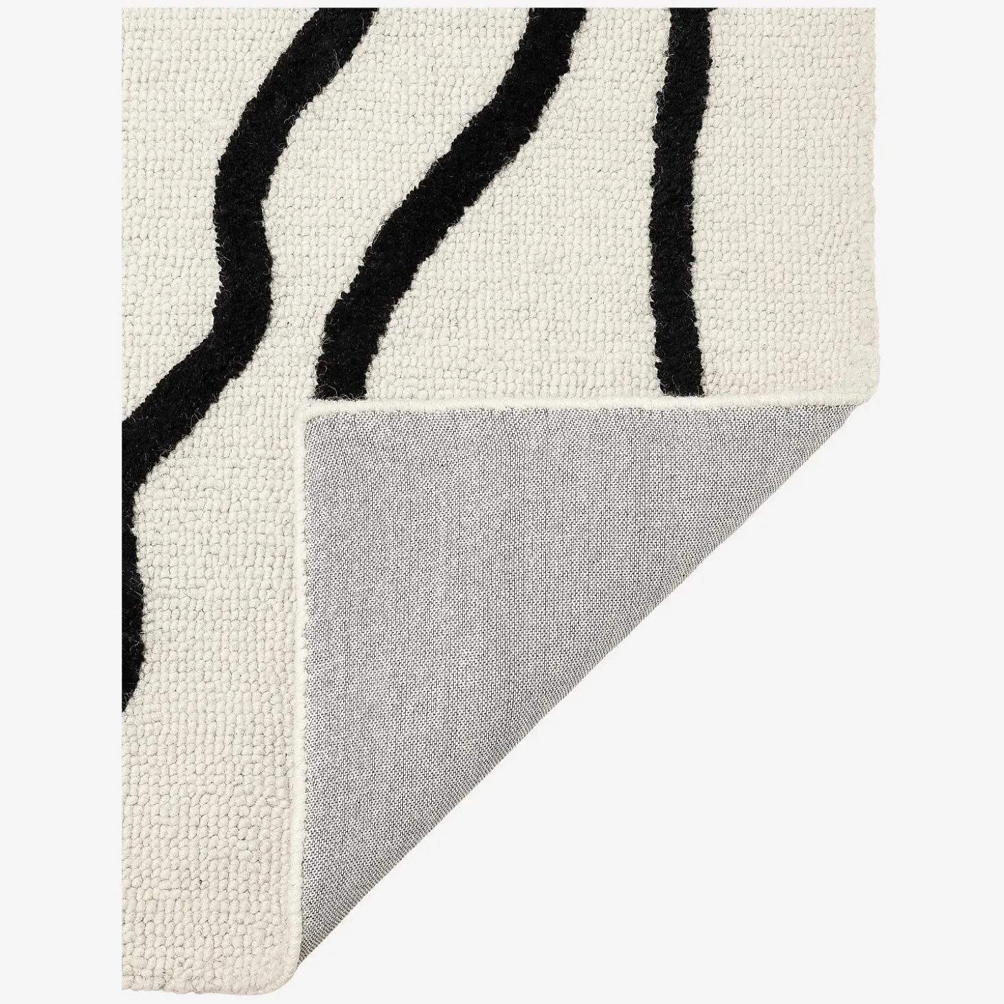 Le tapis Petronille est en laine bouclette avec des parties tuftées à la main au niveau des motifs. Epais et moelleux, il réchauffe votre intérieur avec un style minimaliste et très épuré.