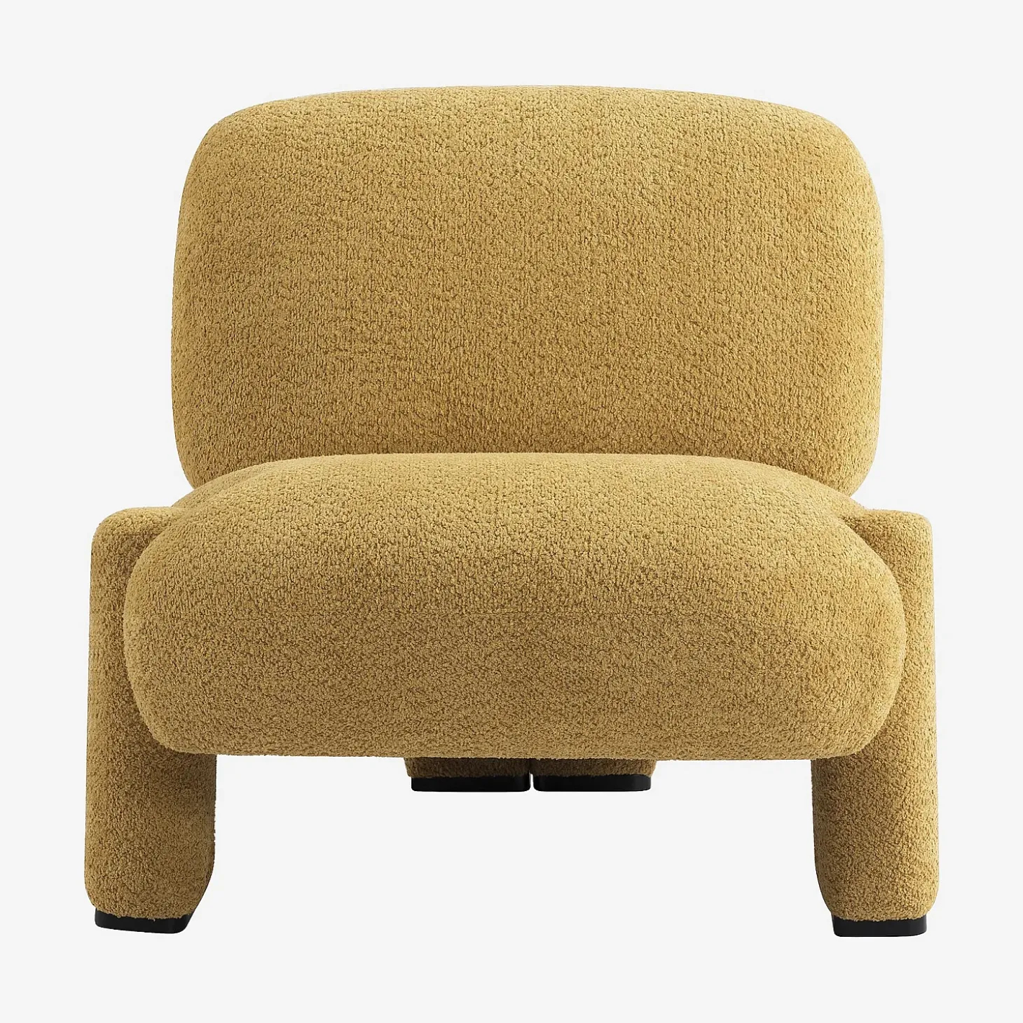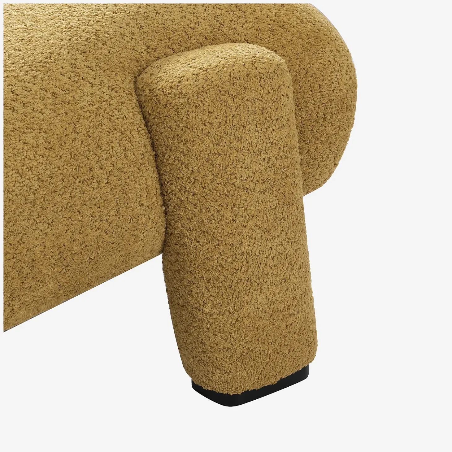 Revêtu d’un tissu bouclette miel au toucher chaleureux, il séduit par une allure douce et rayonnante. Ses lignes arrondies et sa posture légèrement inclinée invitent naturellement à la détente.