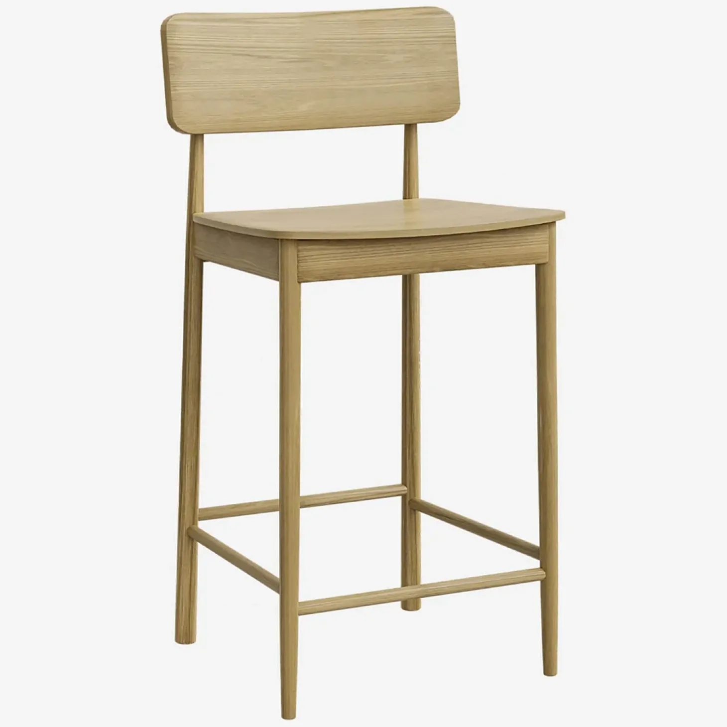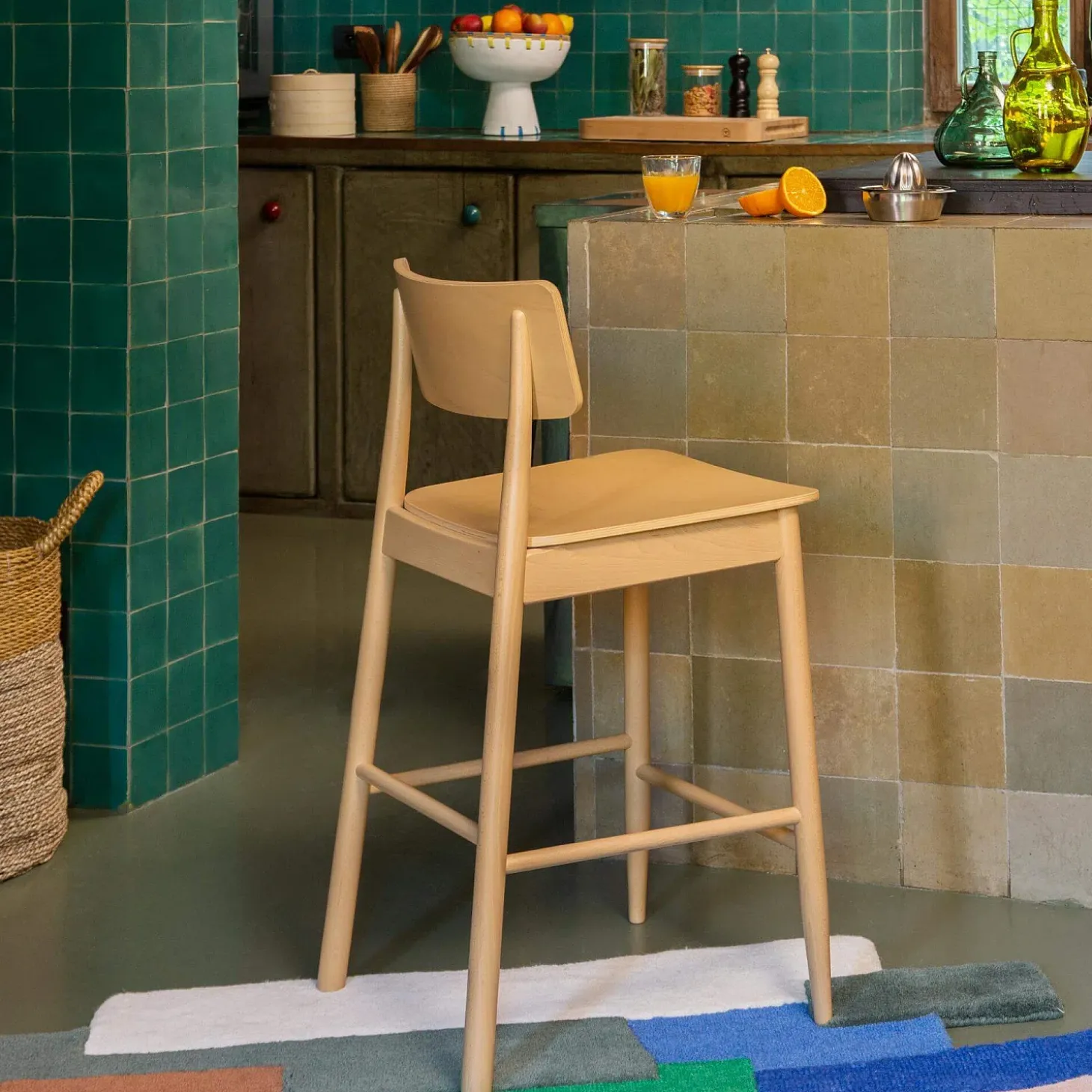Cette chaise haute de bar possède une structure en hêtre massif. Sa couleur dorée naturelle ainsi que sa forme équilibrée et douce en font une chaise dans laquelle on prend plaisir à s’installer et à rester.