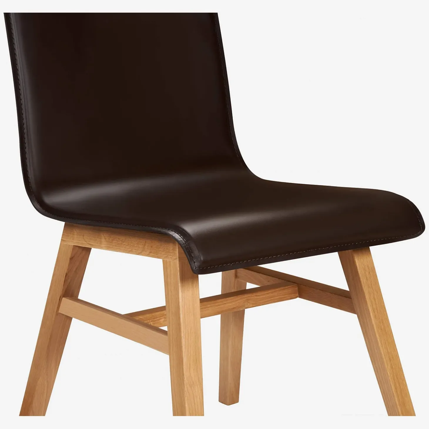 D’inspiration scandinave, la chaise Ply III en cuir marron affiche des lignes sobres et épurées, sur un piétement architecturé en chêne massif huilé, pour un rendu très naturel. Elle est fabriquée en Europe.