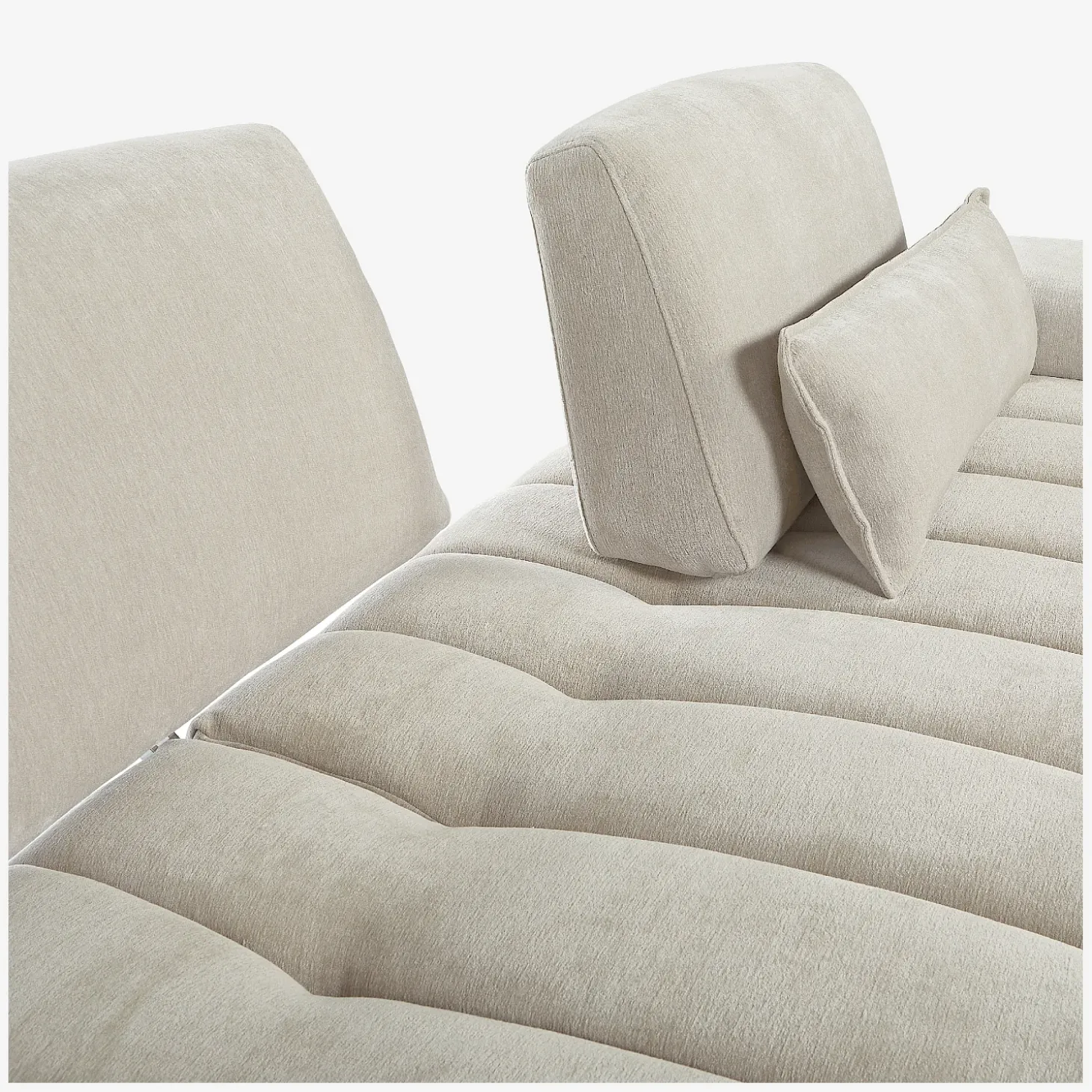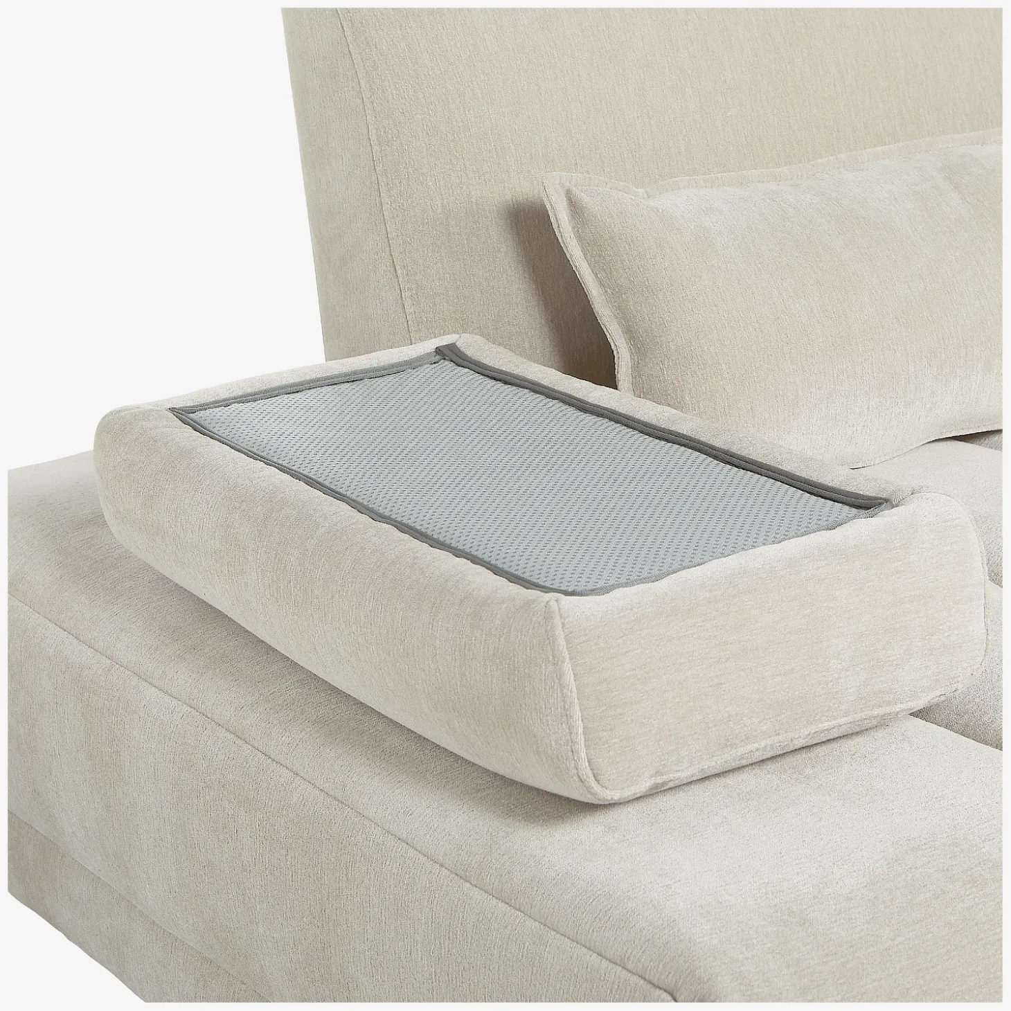 Conçu pour être ajustable grâce à son dossier avance-recule, il permet de personnaliser facilement la profondeur d’assise pour un confort sur mesure, tout en offrant un soutien ferme grâce à son garnissage en mousse. Les deux parties indépendantes du dossier sont modulables sur une amplitude de 30 cm, créant une assise adaptée à chaque situation, de la soirée cinéma à la maison à la parenthèse conviviale autour d’un apéritif. Amovibles, ses accoudoirs s’inscrivent dans cette recherche du bien-être total, puisqu’ils peuvent être déplacés ou retirés afin de s’adapter aux différents moments de vie.