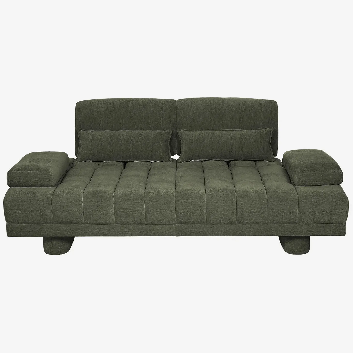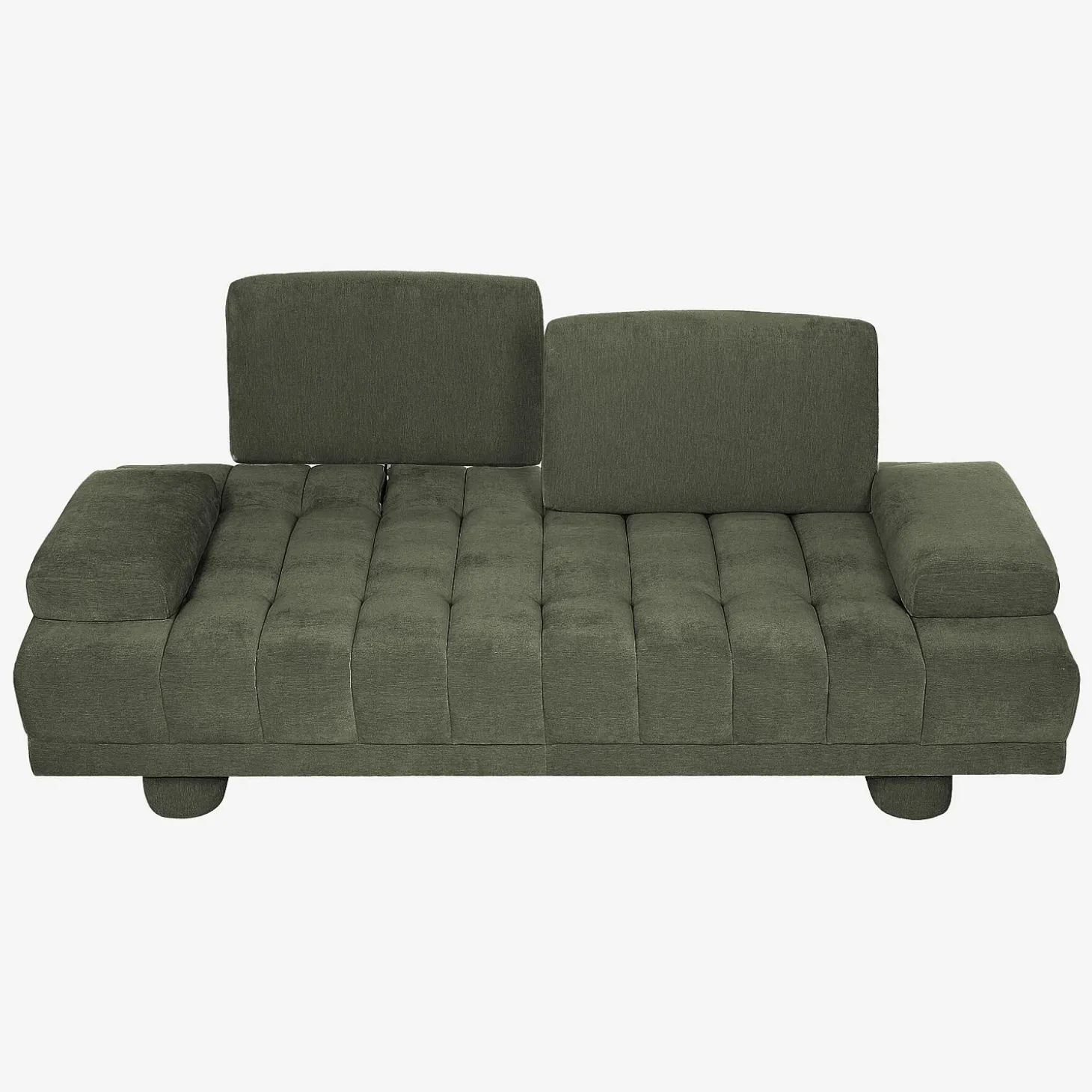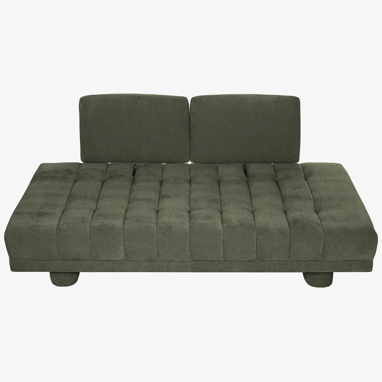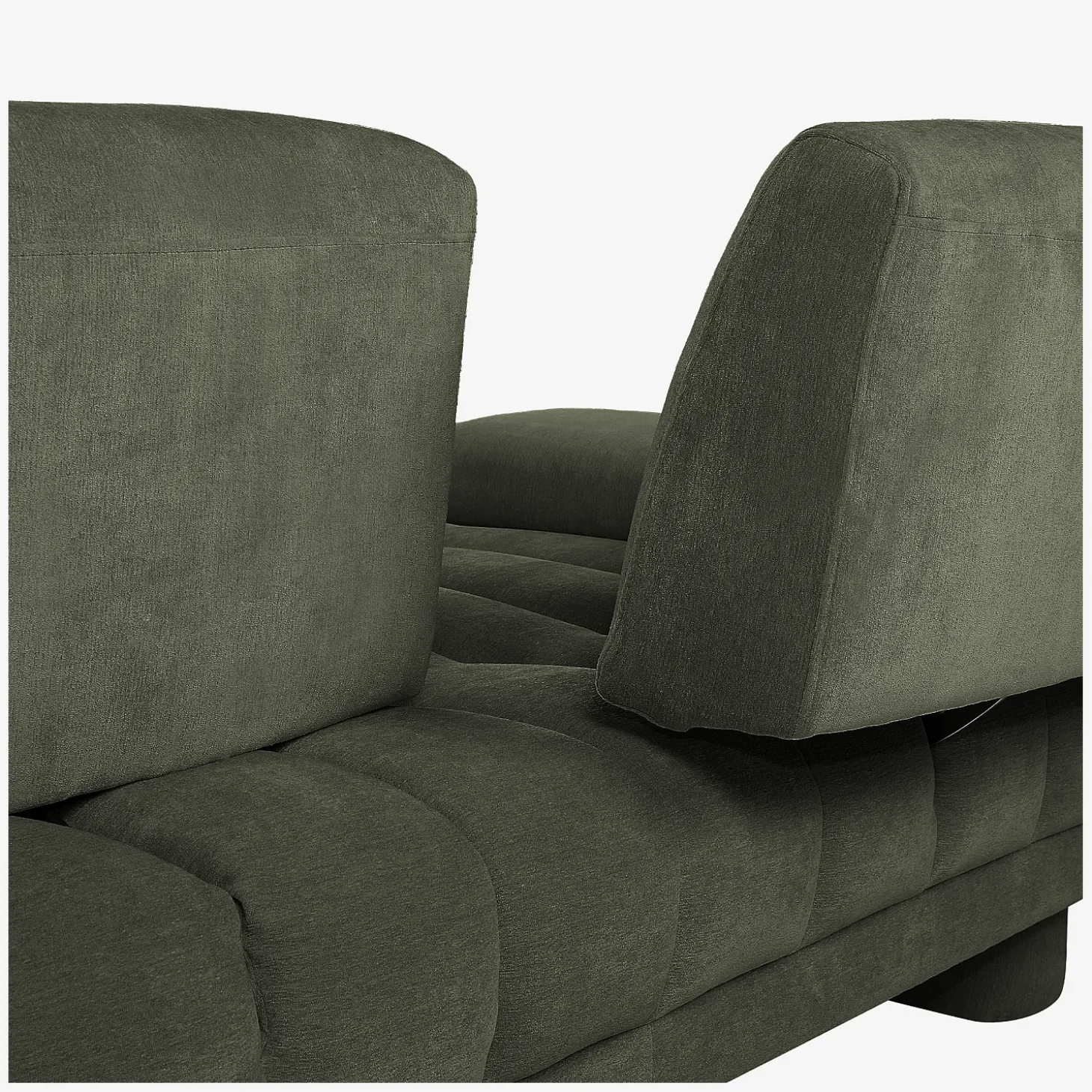 Revêtu d’un délicat tissu vert kaki, il révèle une teinte chaleureuse et discrète qui ajoute une aura organique à un intérieur.