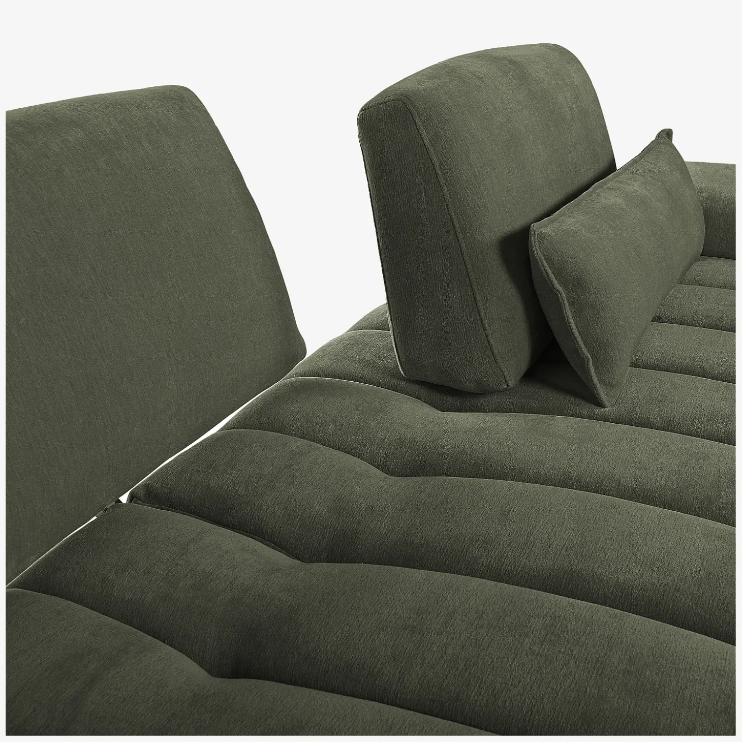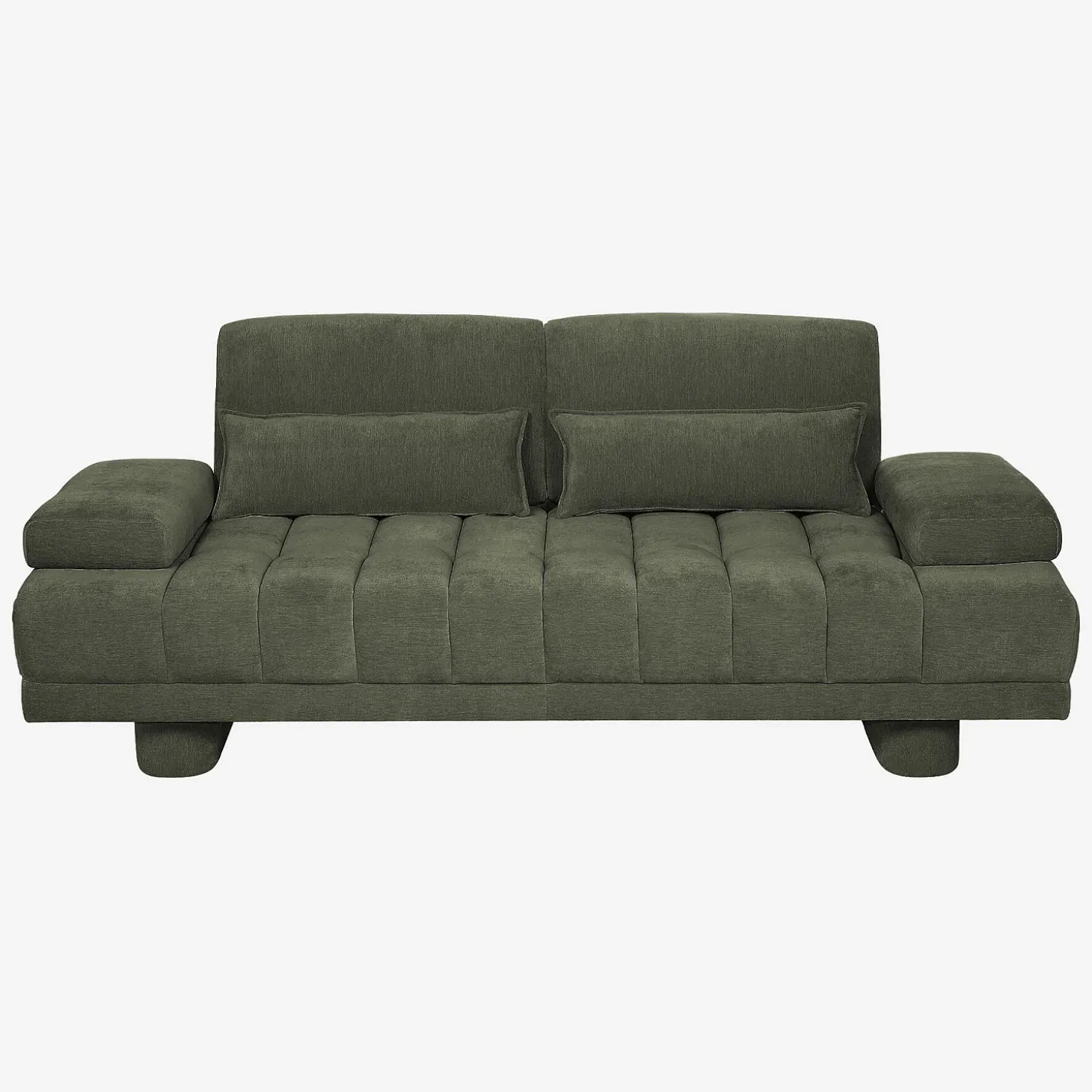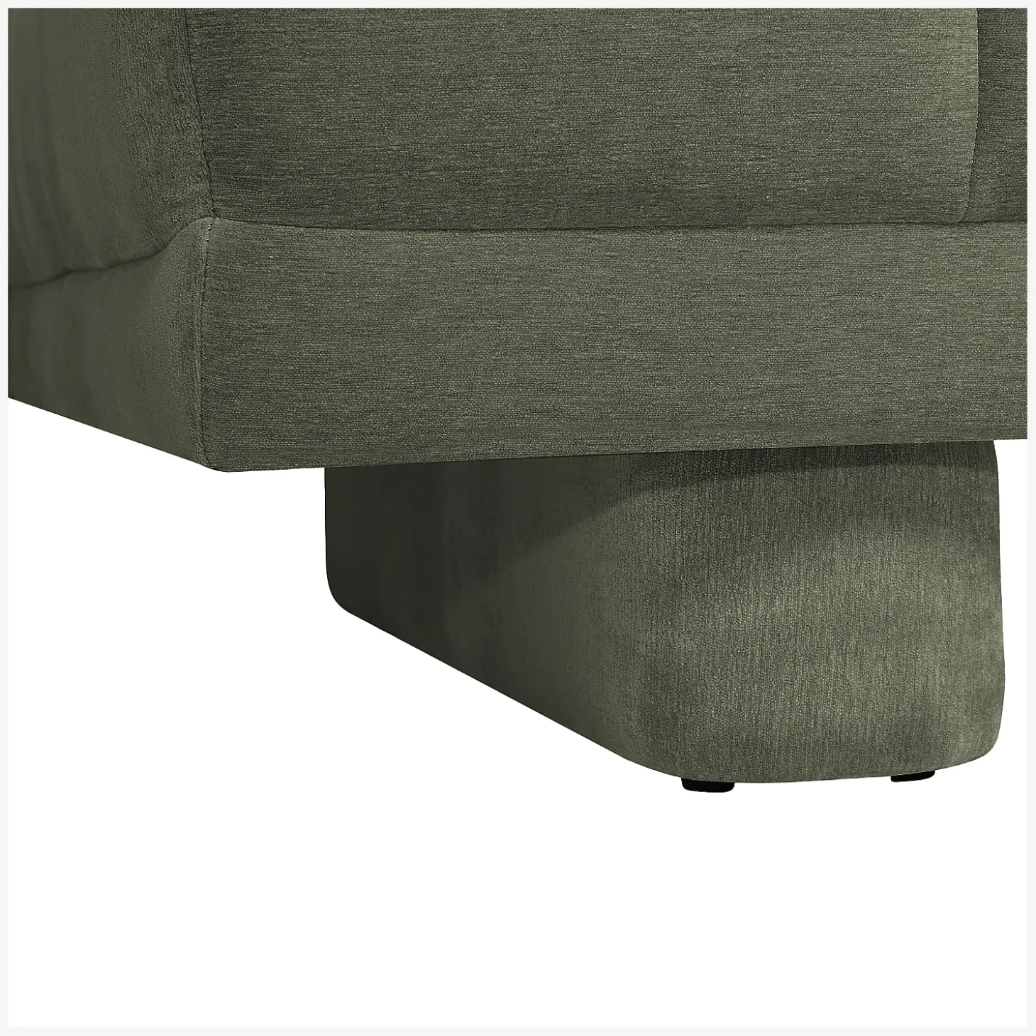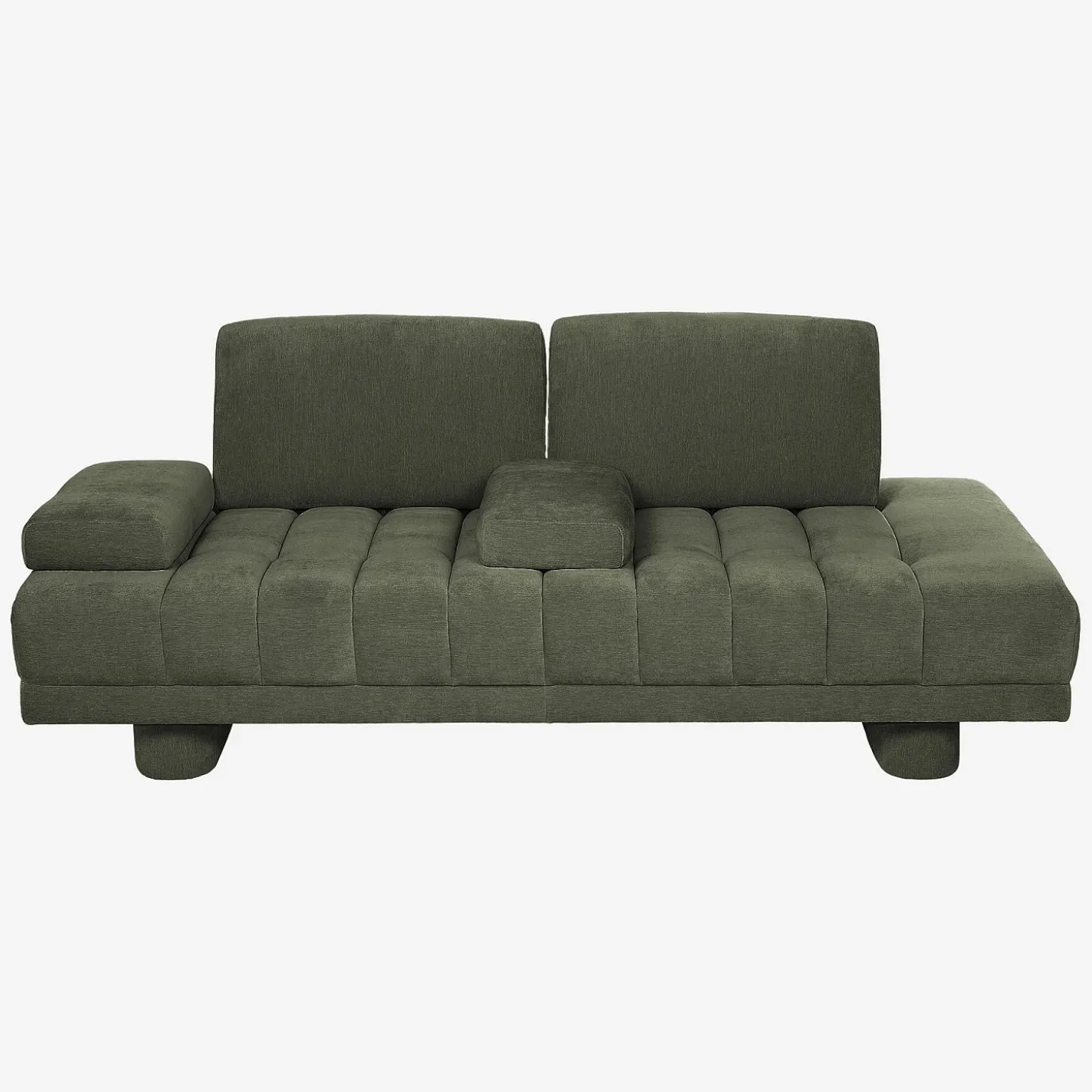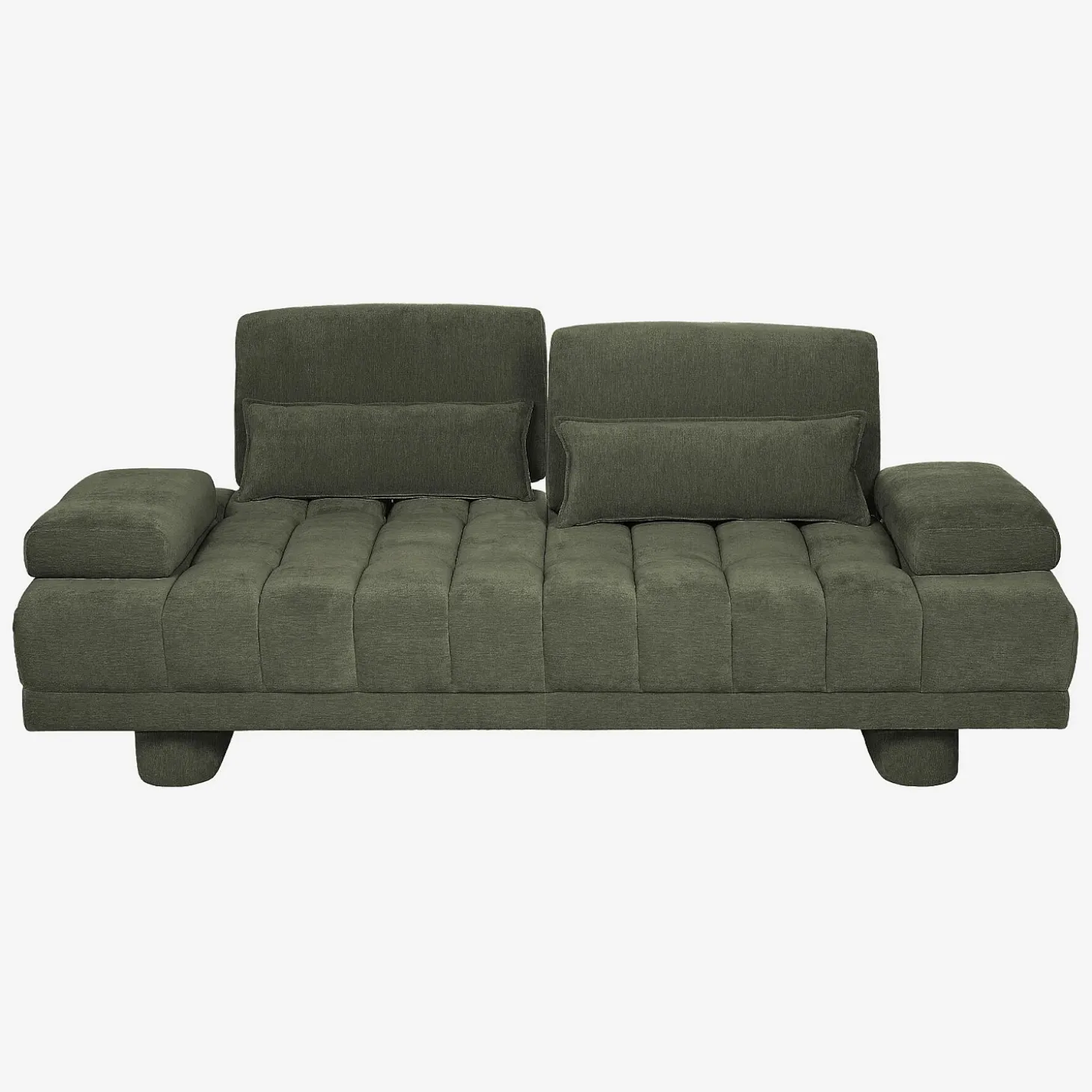 Revêtu d’un délicat tissu vert kaki, il révèle une teinte chaleureuse et discrète qui ajoute une aura organique à un intérieur.