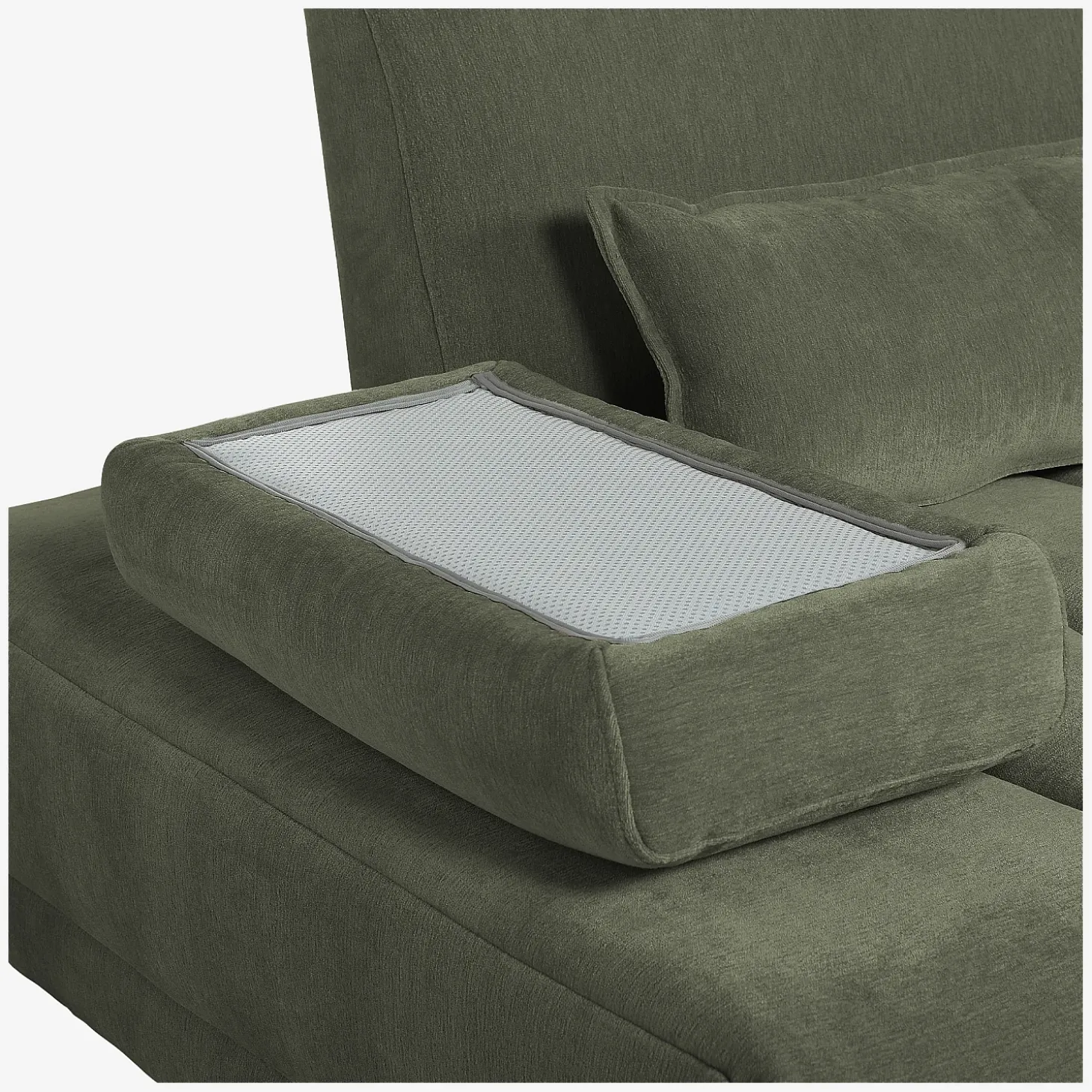 Conçu pour être ajustable grâce à son dossier avance-recule, il permet de personnaliser facilement la profondeur d’assise pour un confort sur mesure, tout en offrant un soutien ferme grâce à son garnissage en mousse. Les deux parties indépendantes du dossier sont modulables sur une amplitude de 30 cm, créant une assise adaptée à chaque situation, de la soirée cinéma à la maison à la parenthèse conviviale autour d’un apéritif. Amovibles, ses accoudoirs s’inscrivent dans cette recherche du bien-être total, puisqu’ils peuvent être déplacés ou retirés afin de s’adapter aux différents moments de vie.