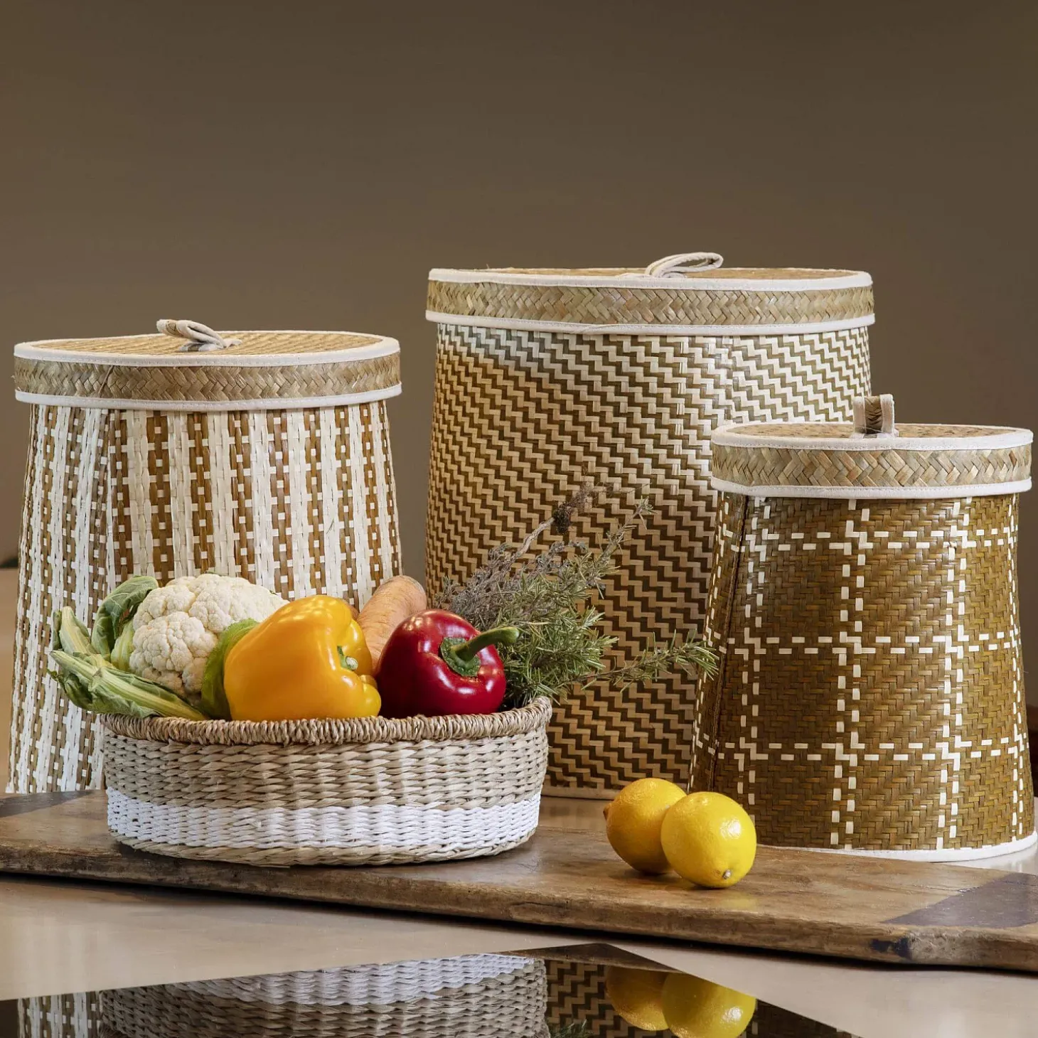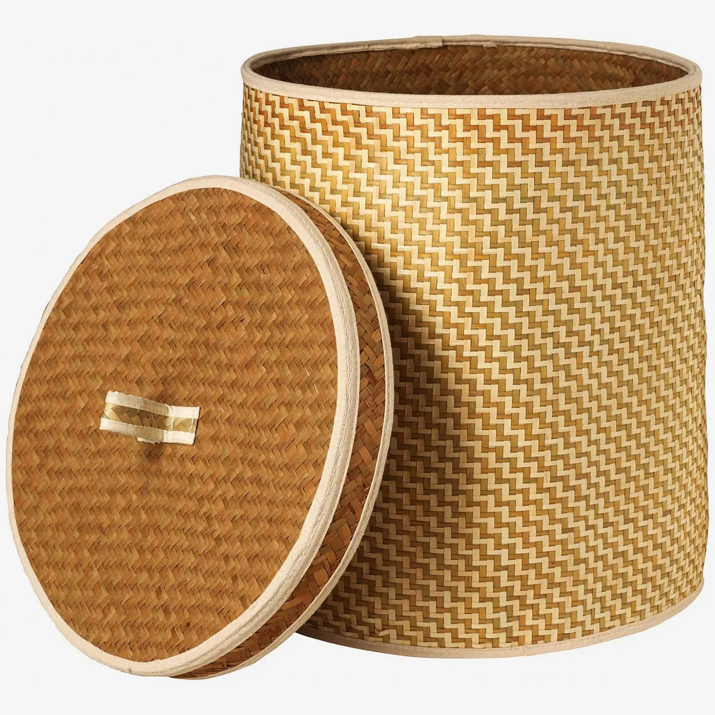 Ces boîtes de rangement sont également décoratives. Elles s’exposent librement grâce à leurs motifs géométriques colorés.