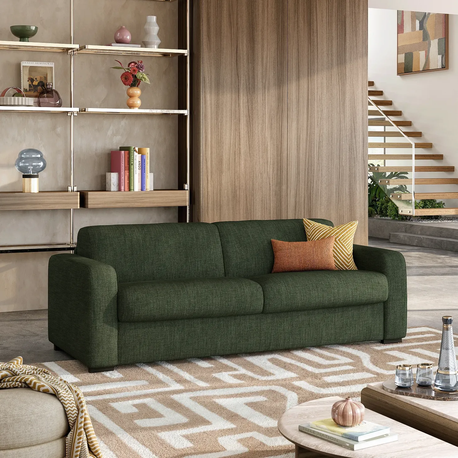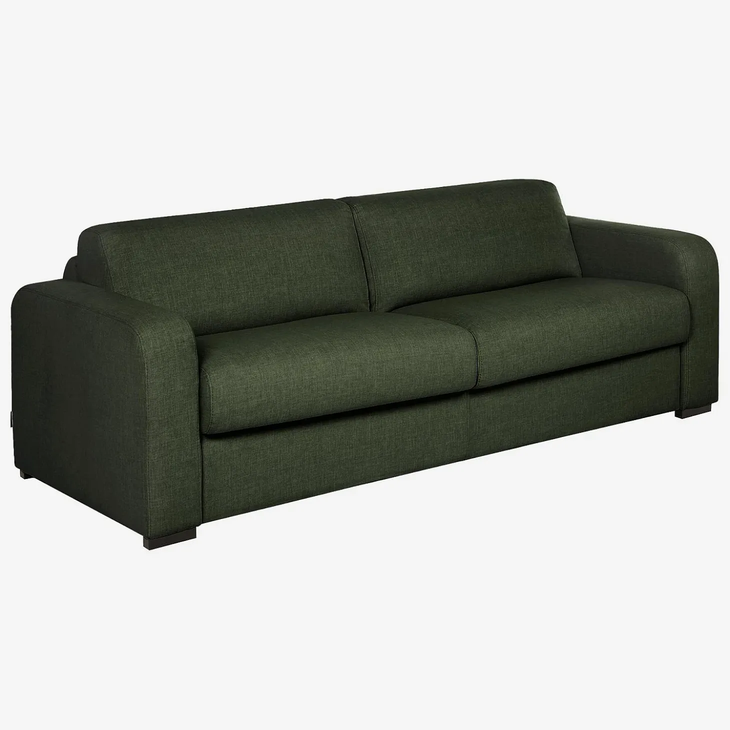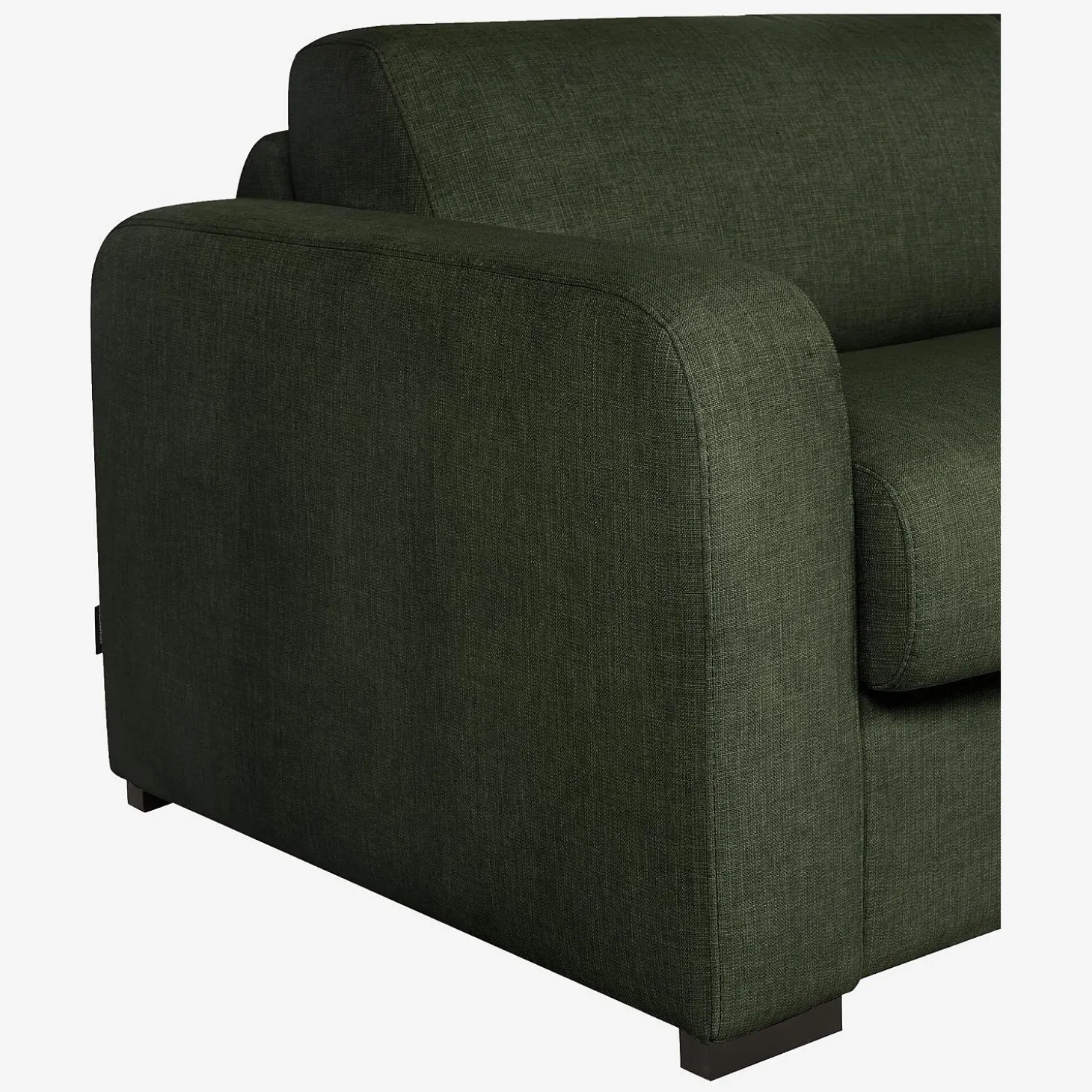 Le canapé convertible 2 places Porto est habillé d’un tissu Lipari texturé, au coloris vert foncé naturel et apaisant. Allié pratique pour un usage serein, ce revêtement déperlant garantit une protection efficace contre les éclaboussures.