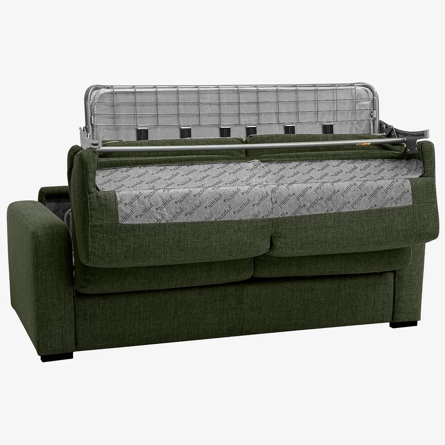 Ce canapé-lit offre un couchage de 140 x 190 cm avec un matelas en mousse haute résilience de 14 cm d’épaisseur alliant soutien optimal et confort durable. Conçu pour un sommeil réparateur, il est digne d’un véritable lit.