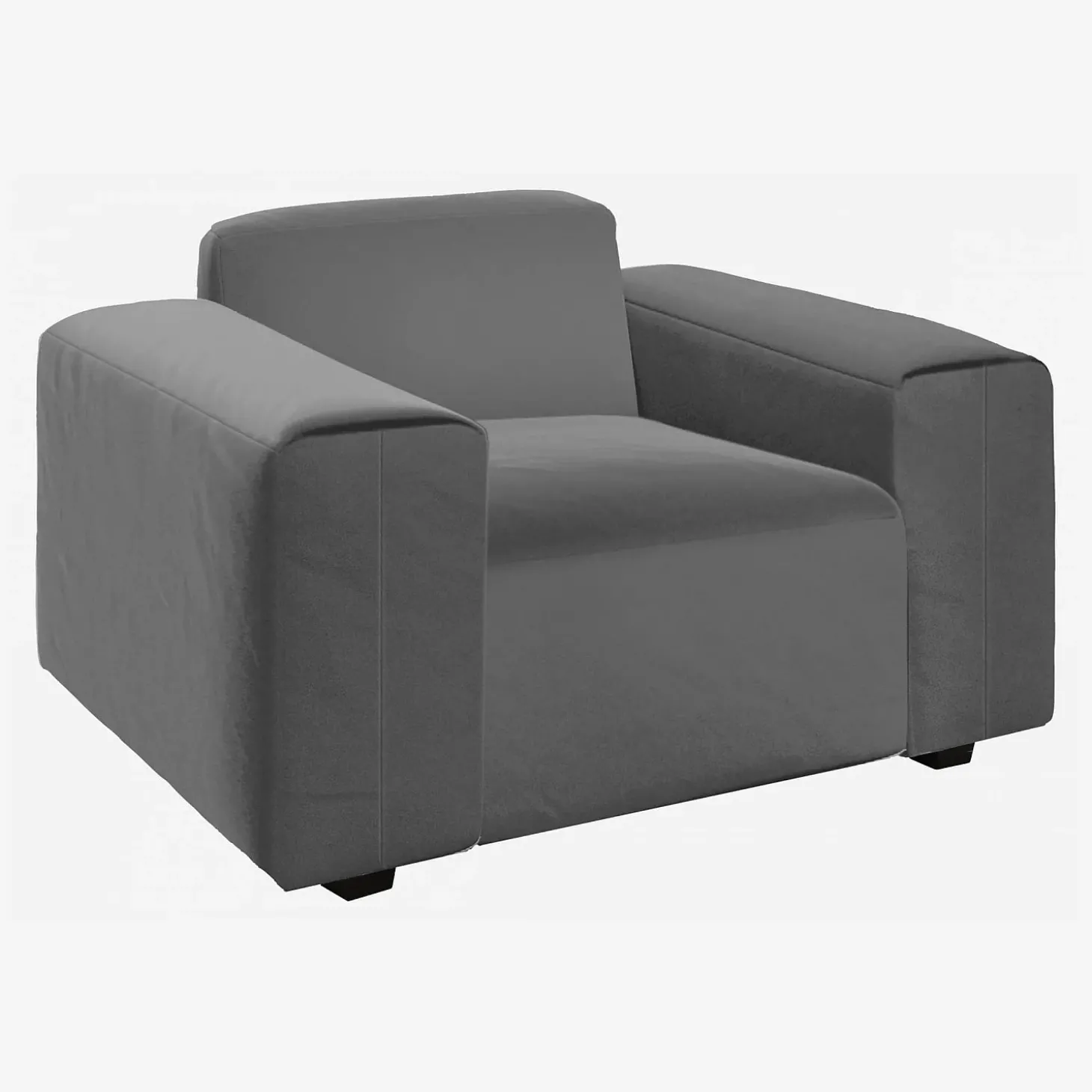 Le fauteuil Posada en velours gris ardoise est un modèle d’une grande élégance. Son design soigné se retrouve dans les coutures et ses finitions.