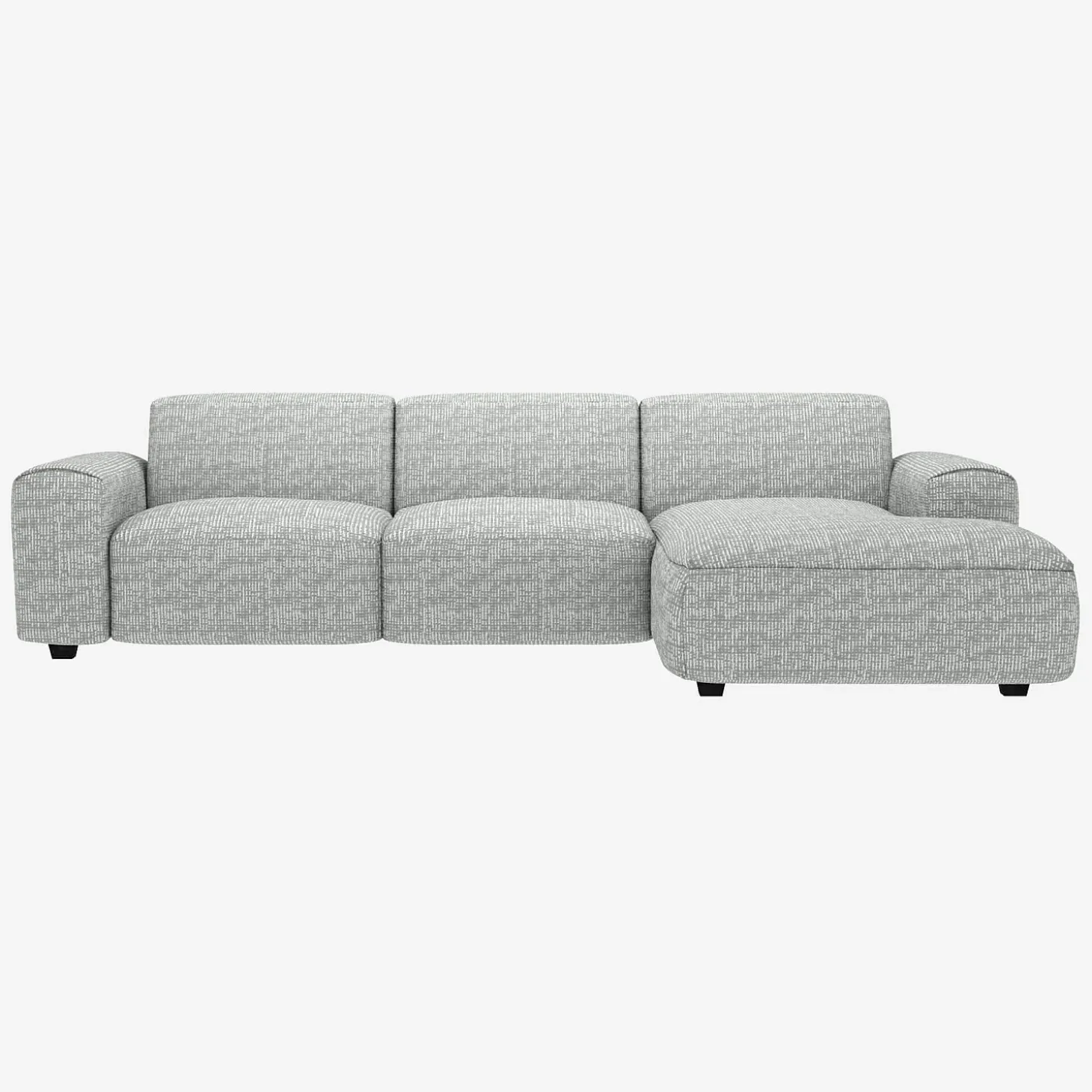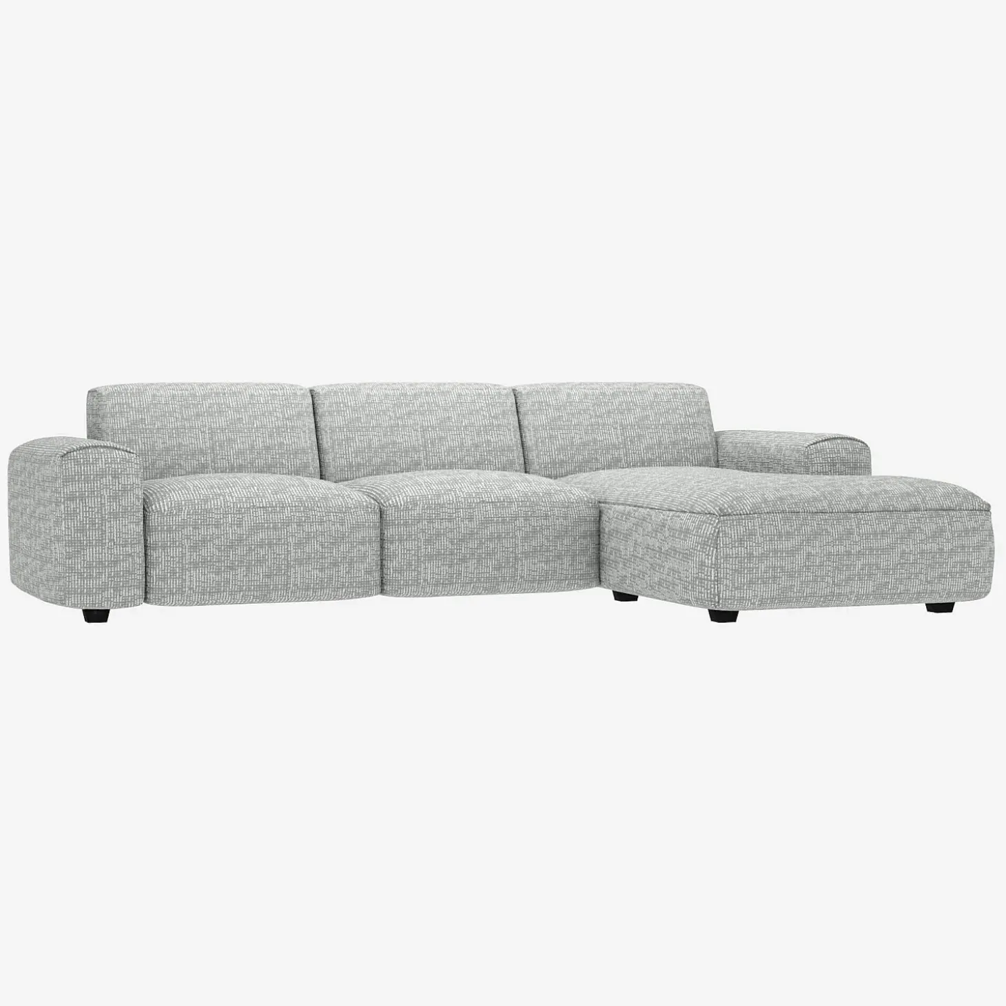 Le canapé d’angle droit Posada en tissu Alba gris brume est un canapé d’une grande élégance. Son design soigné se retrouve dans ses coutures et les finitions en ourlet de ses accoudoirs.